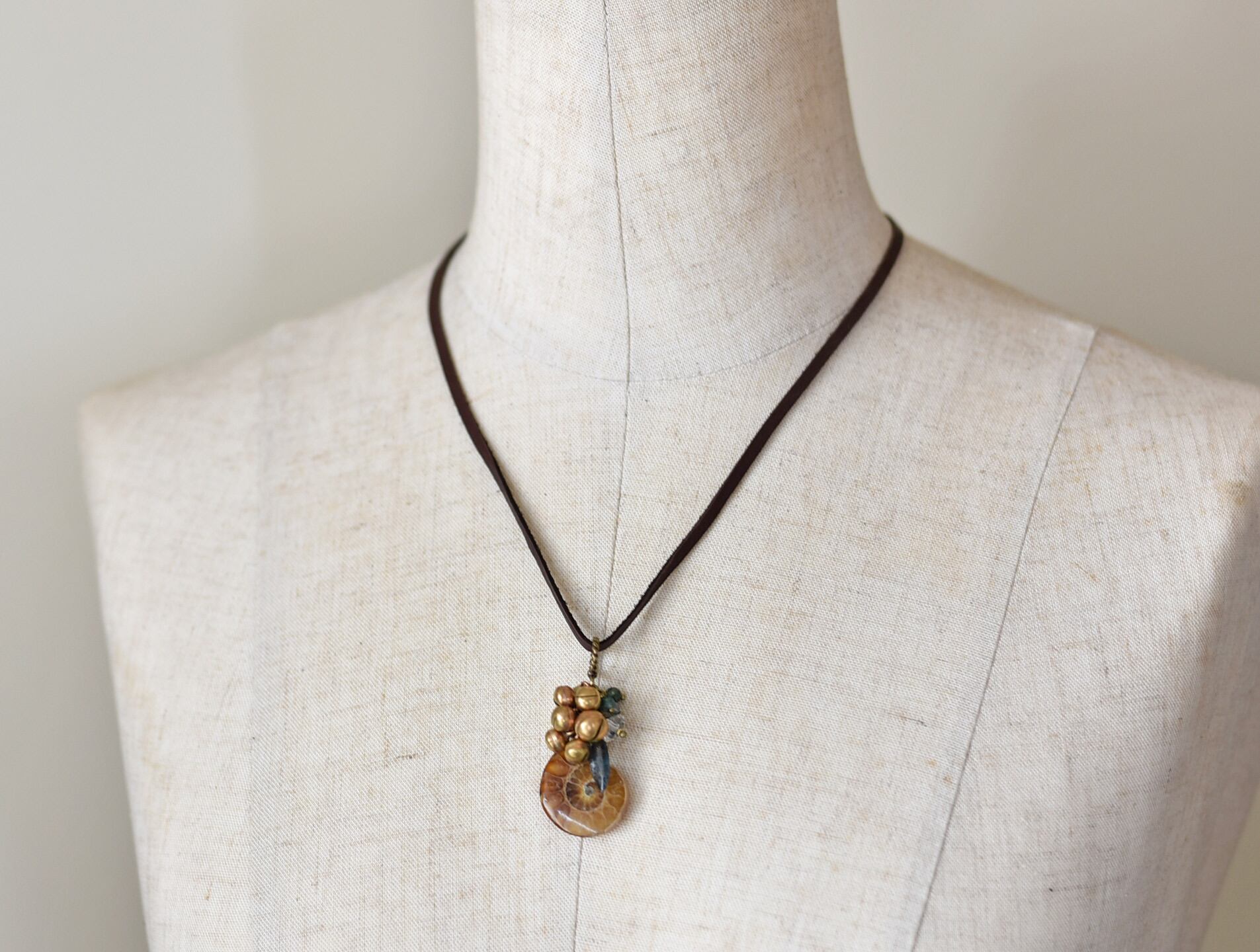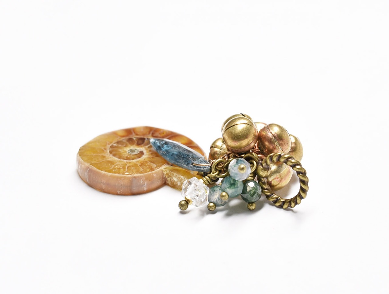 素材::アンモナイト、真鍮、カイヤナイト、モスアゲート、ハーキマーダイヤモンド