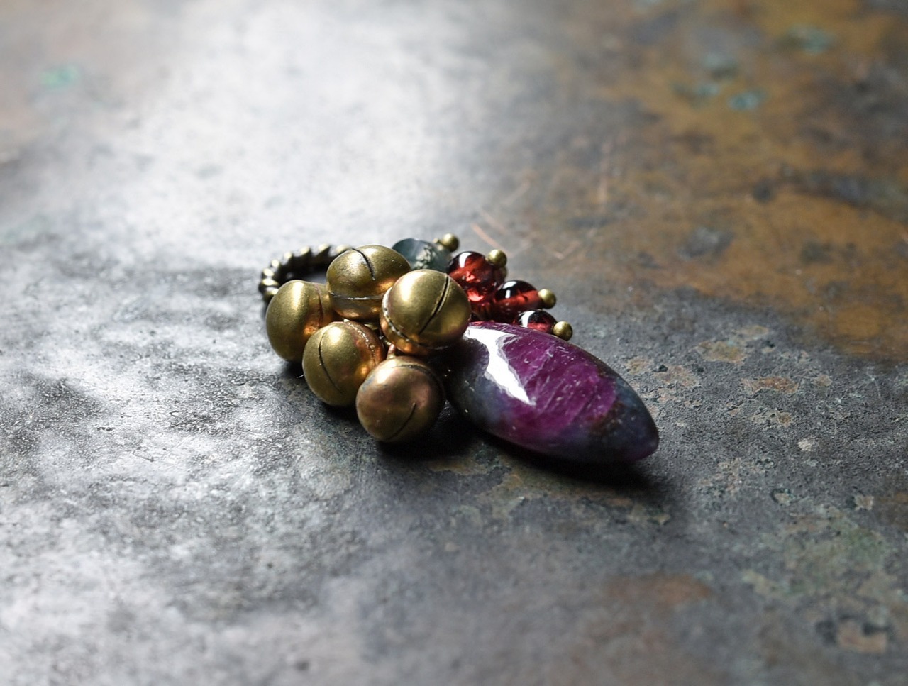 素材:ルビーインゾイサイト、ガーネット、モスアゲート、真鍮