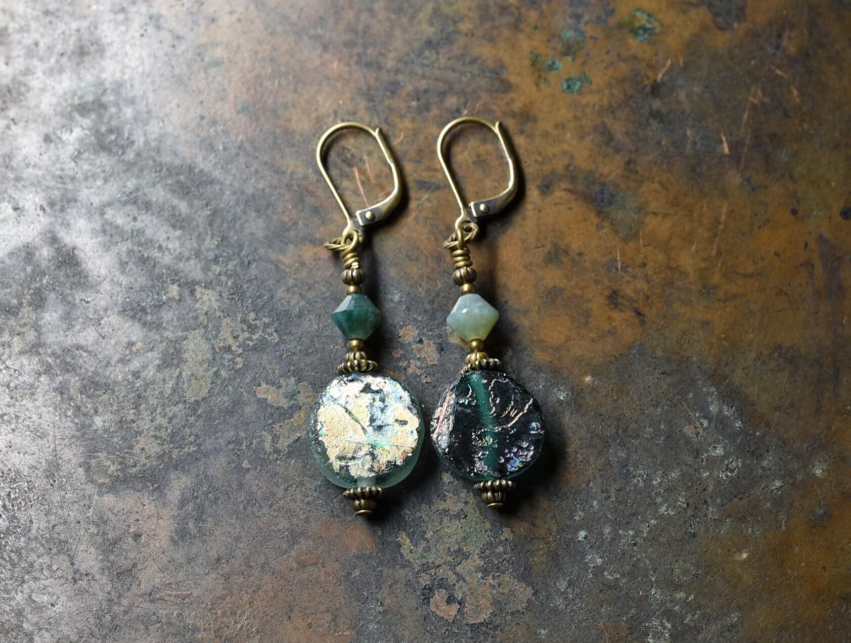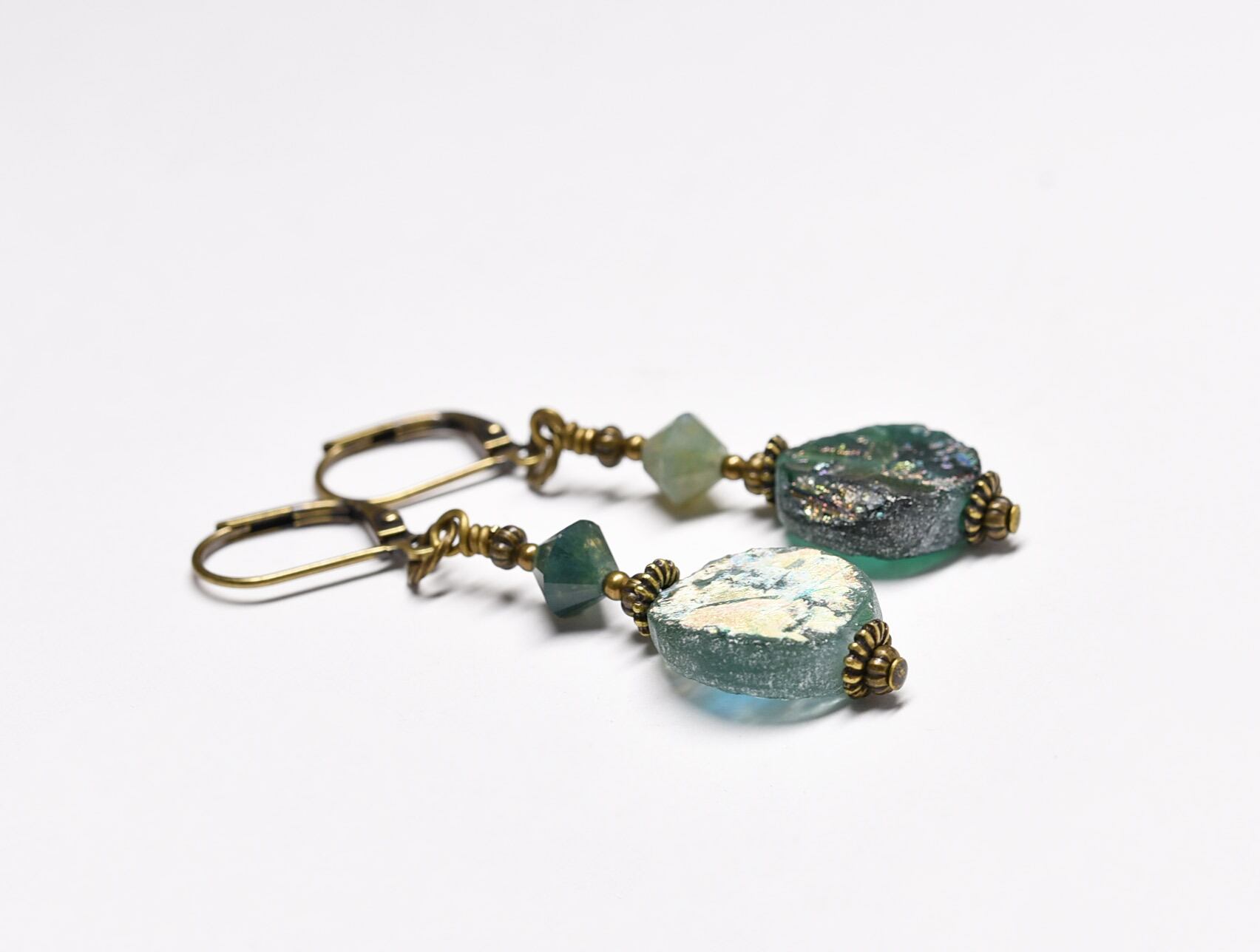 時を経た輝きと、光の下ではガラス自体の美しい色合いが楽しめるピアスです。