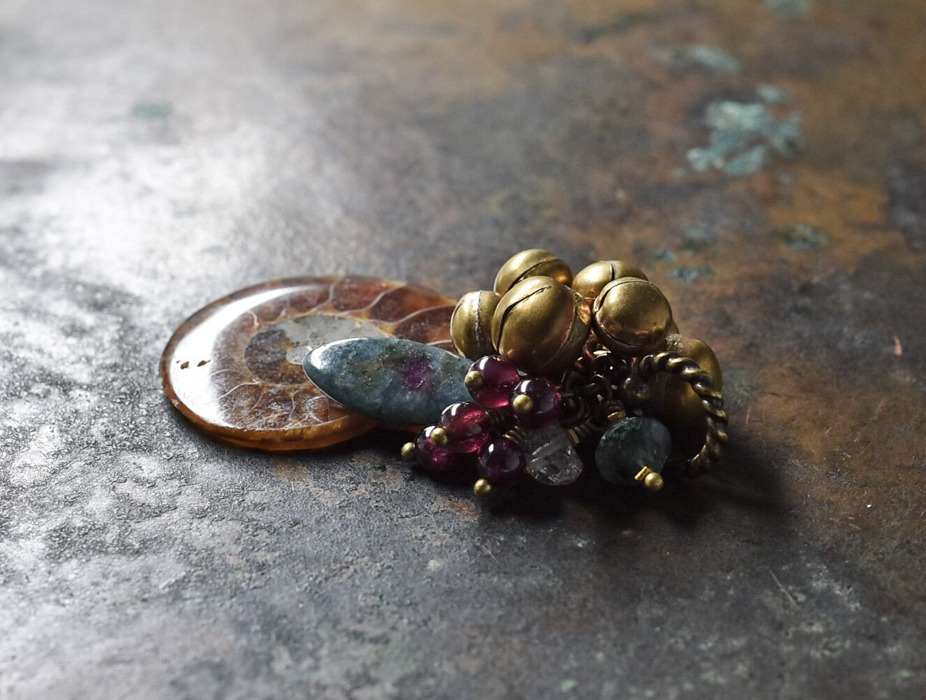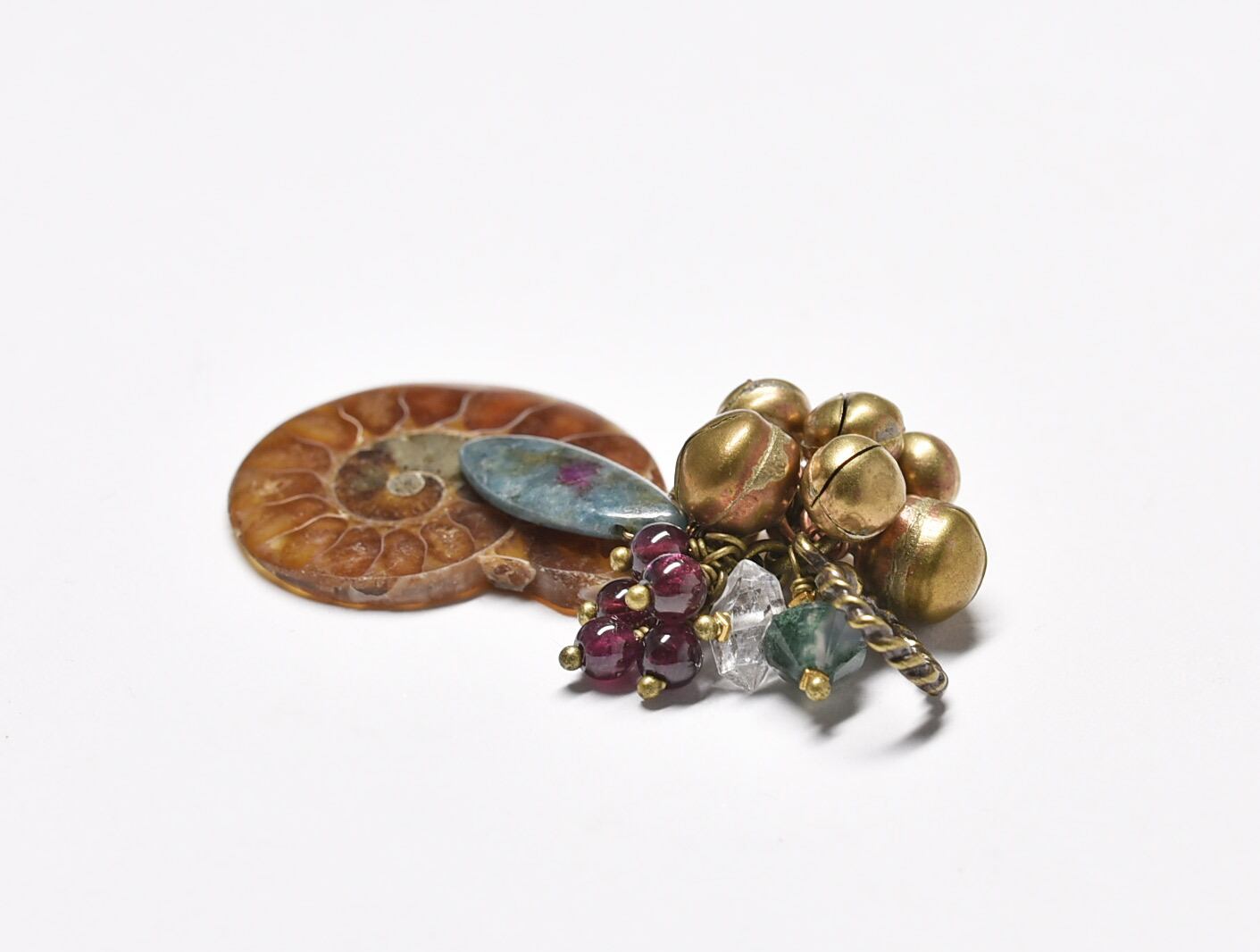 素材::アンモナイト、真鍮、ルビーインゾイサイト、ガーネット、ハーキマーダイヤモンド、モスアゲート