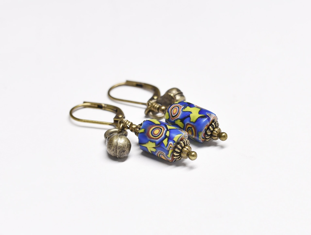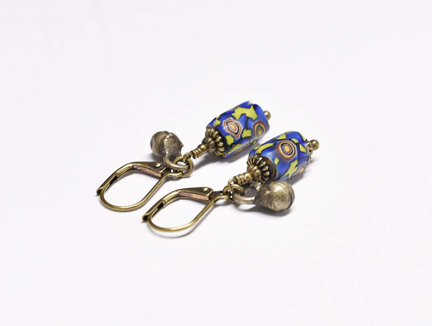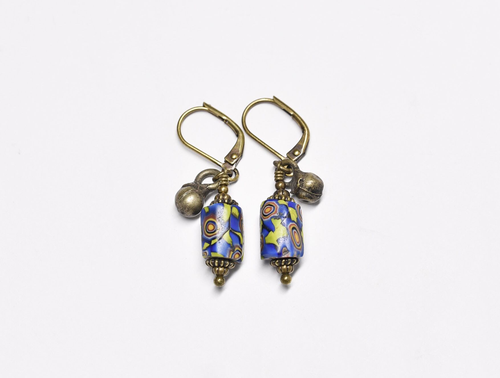 ヴェネチアのアンティークビーズと民族鈴を繋いだピアスです。