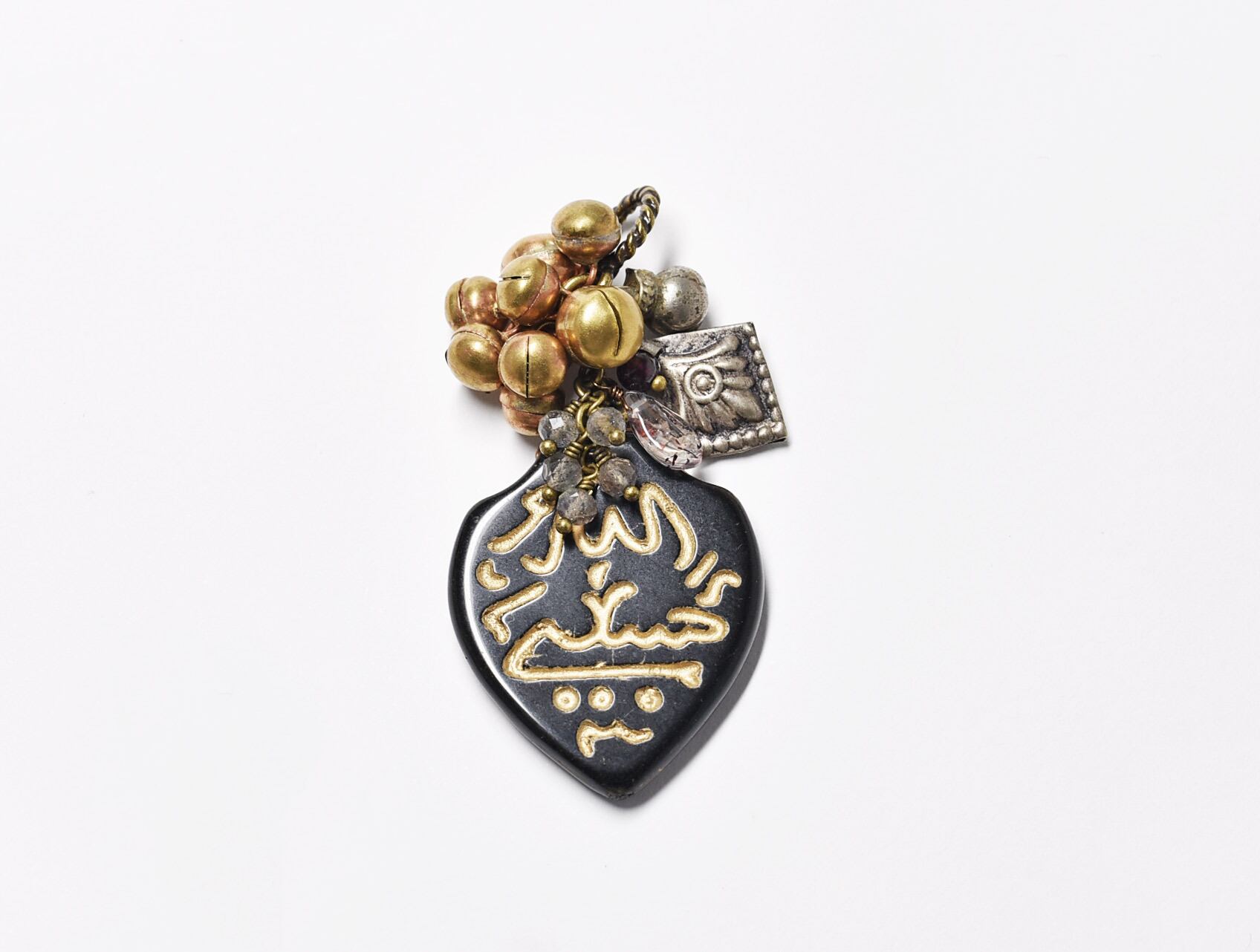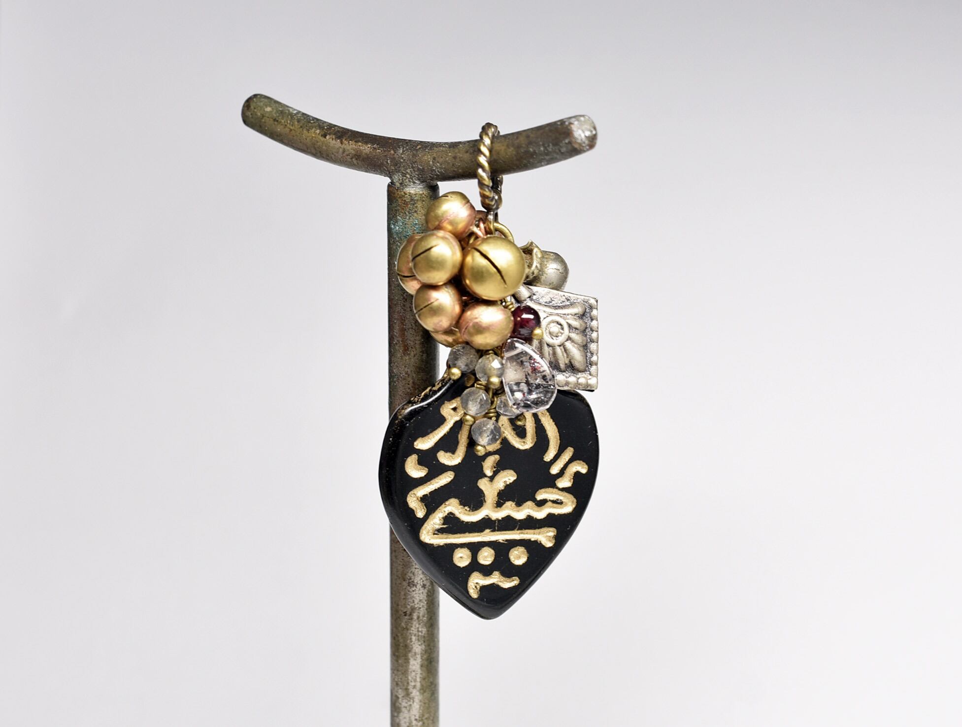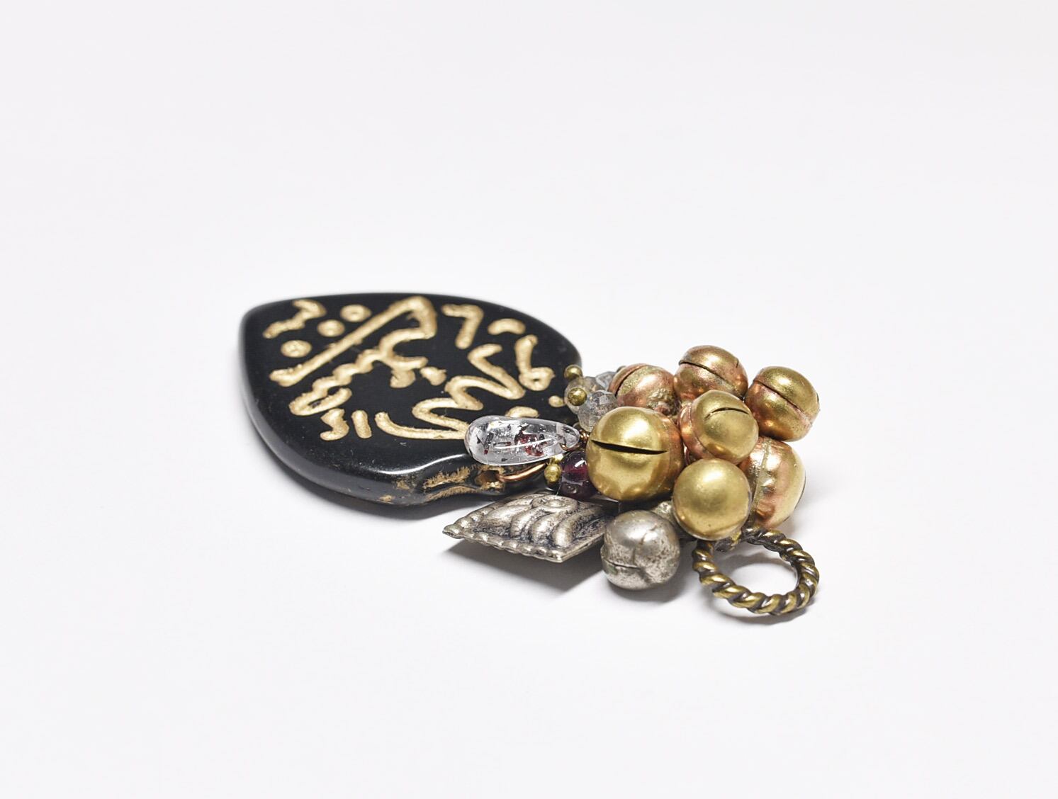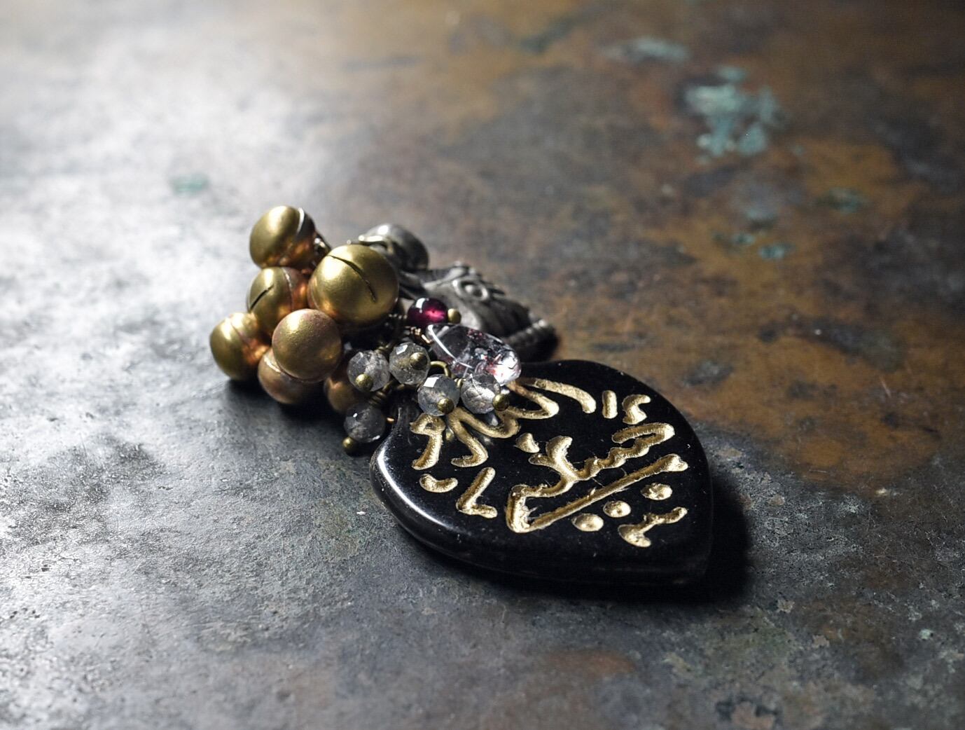 漆黒聖者のビーズとたわわな鈴アフガンメタルとたわわな天然石のペンダントトップ