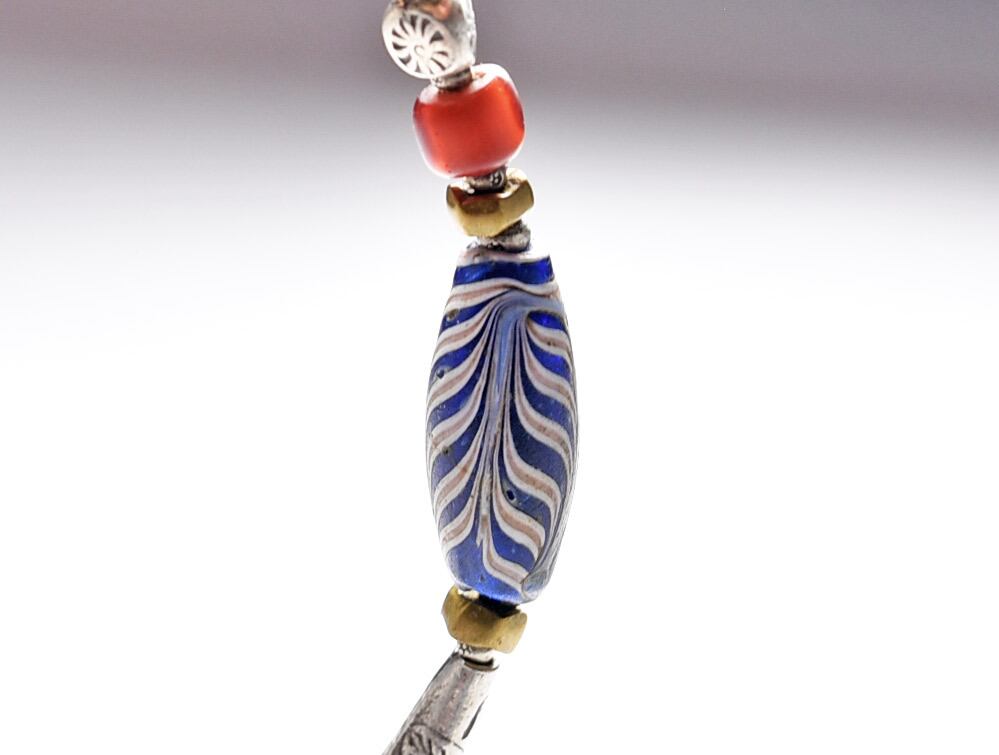 名前の通り、流麗な羽模様が施されたベネチア産のアンティークビーズを使いました。