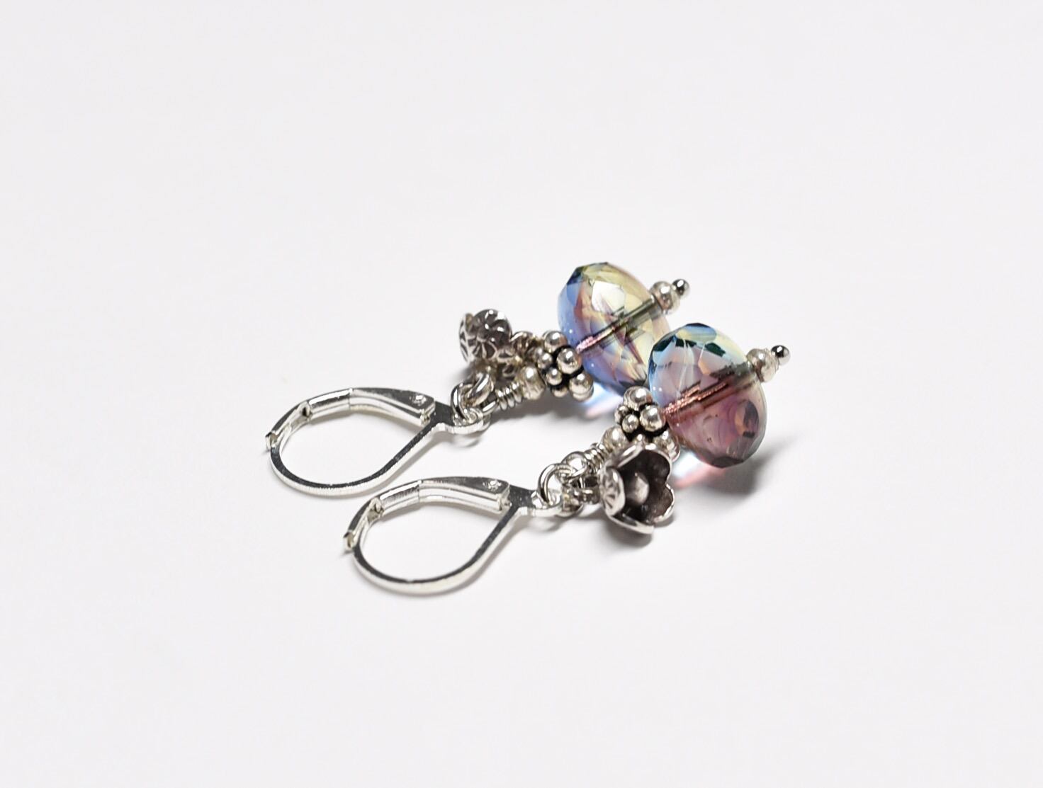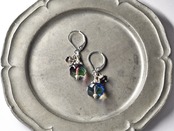 ウランガラスと小さなお花カレンシルバーのピアス(淡)