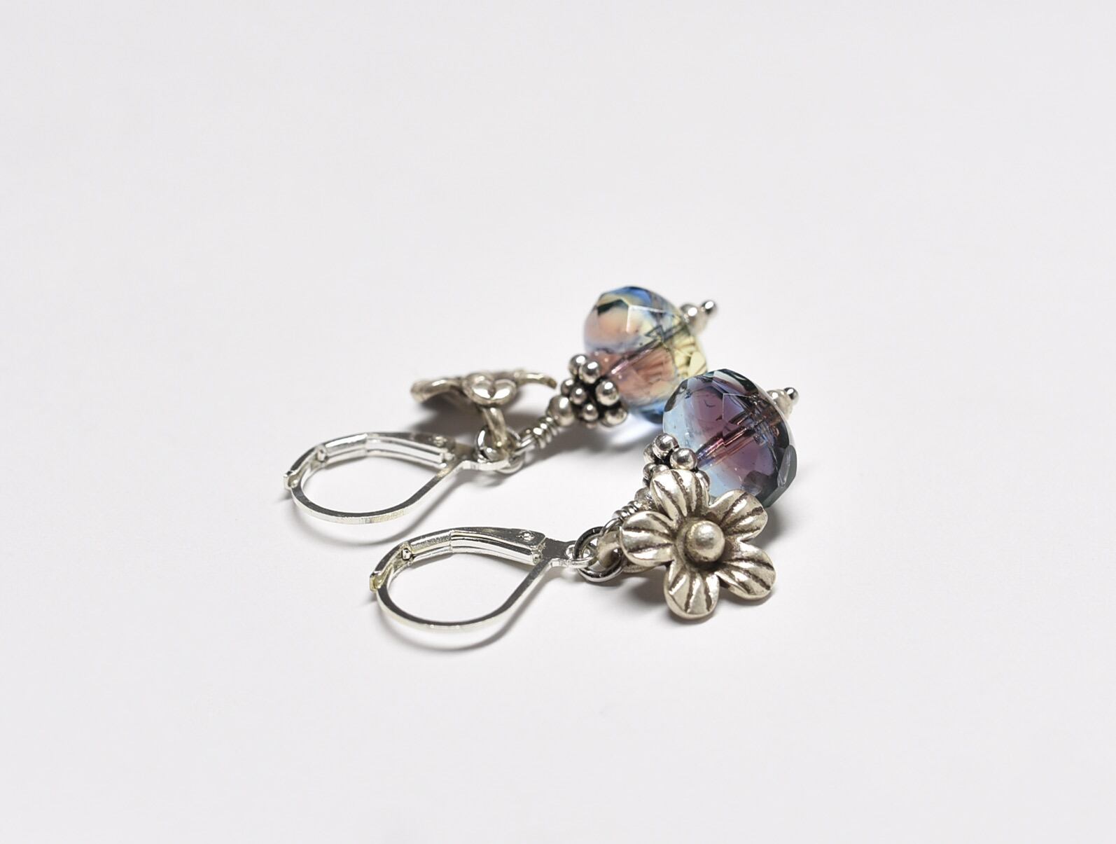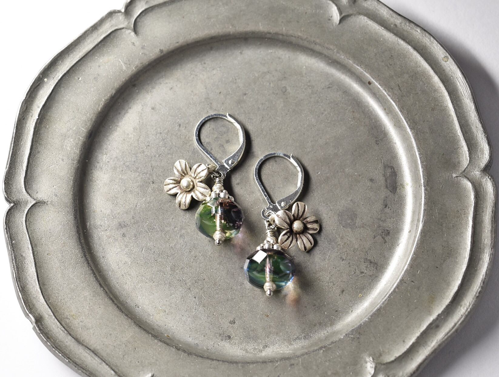 ウランガラスとカレンシルバーチャームを繋いだピアスです。