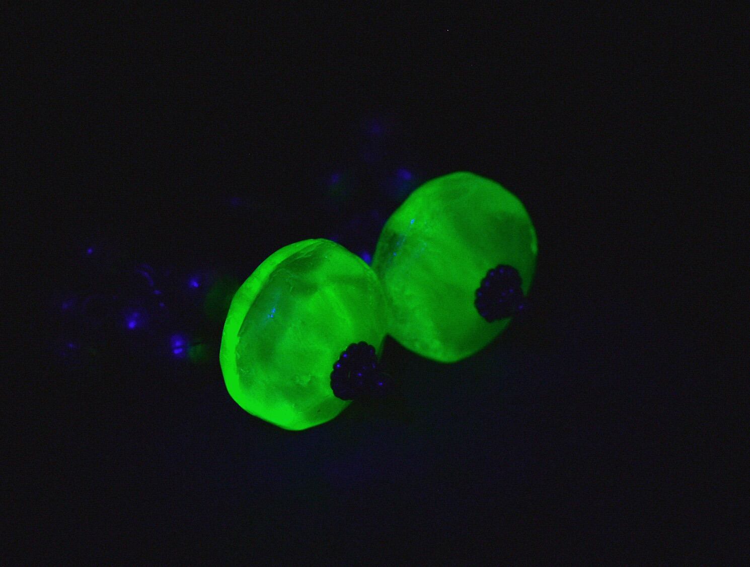 (ウランガラスの大きさ:縦1.1cm 直径1.6cm)