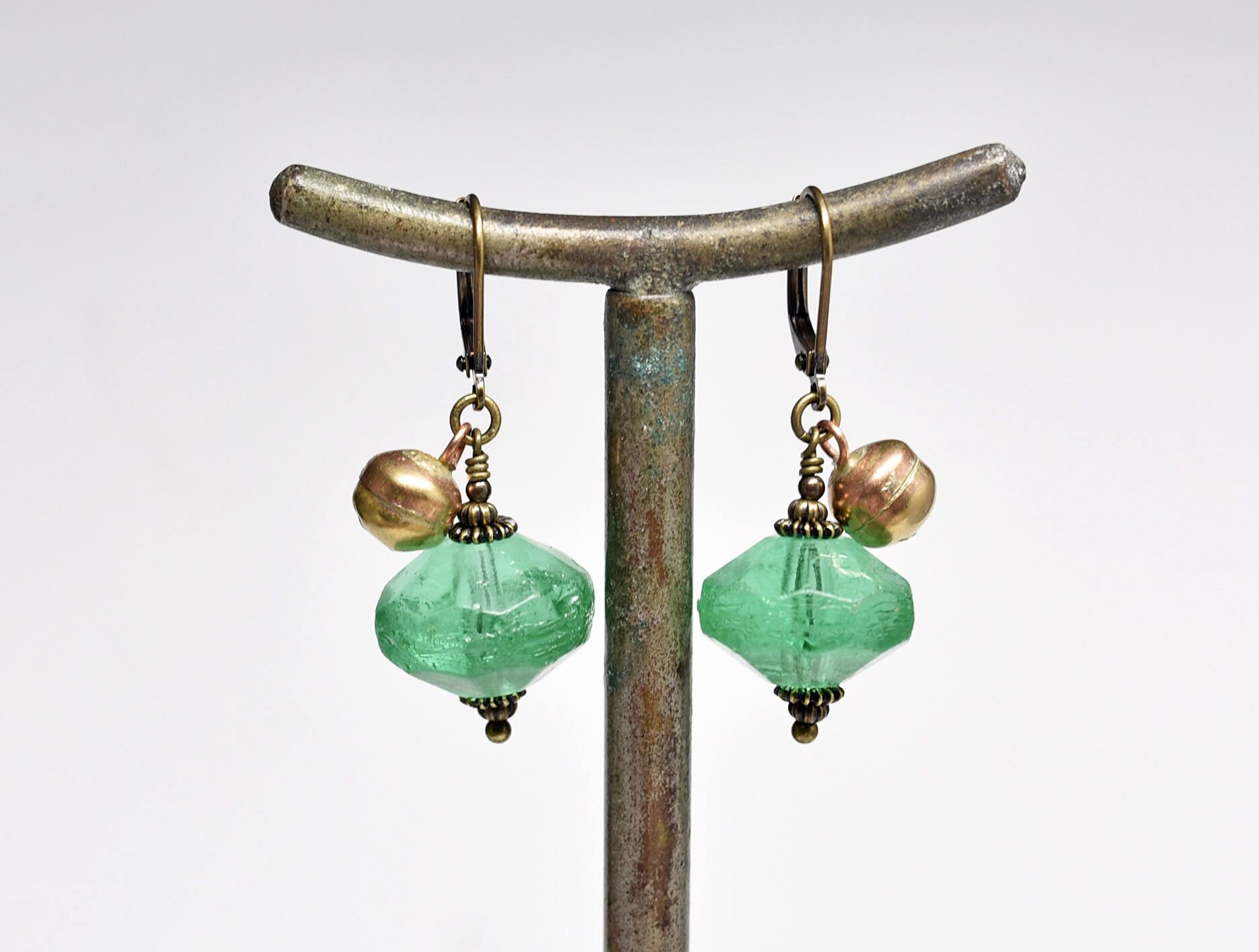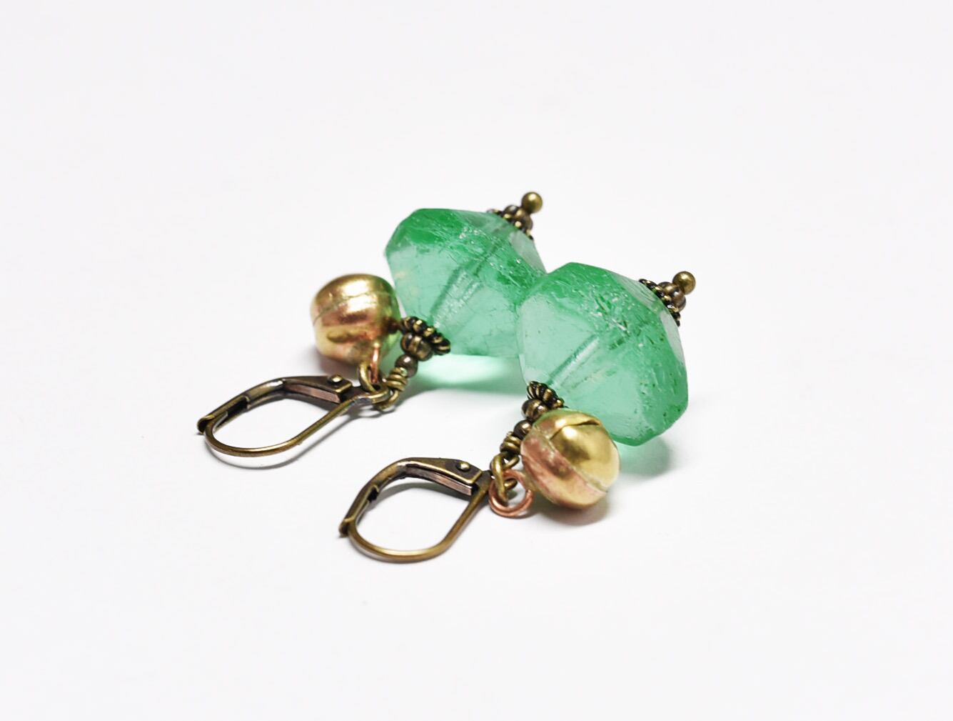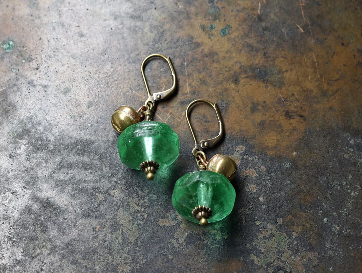 アンティークウランガラスと鈴のピアス