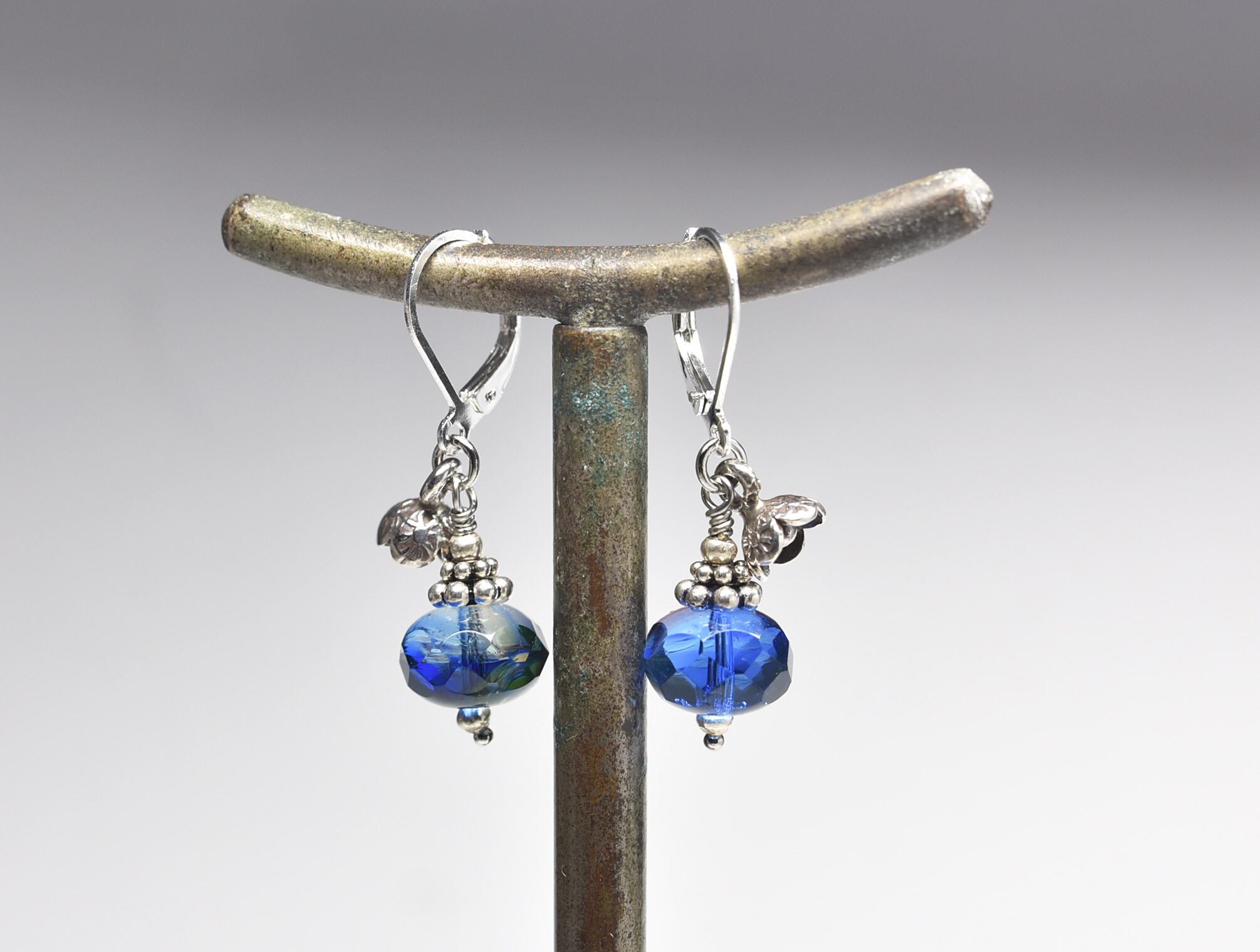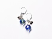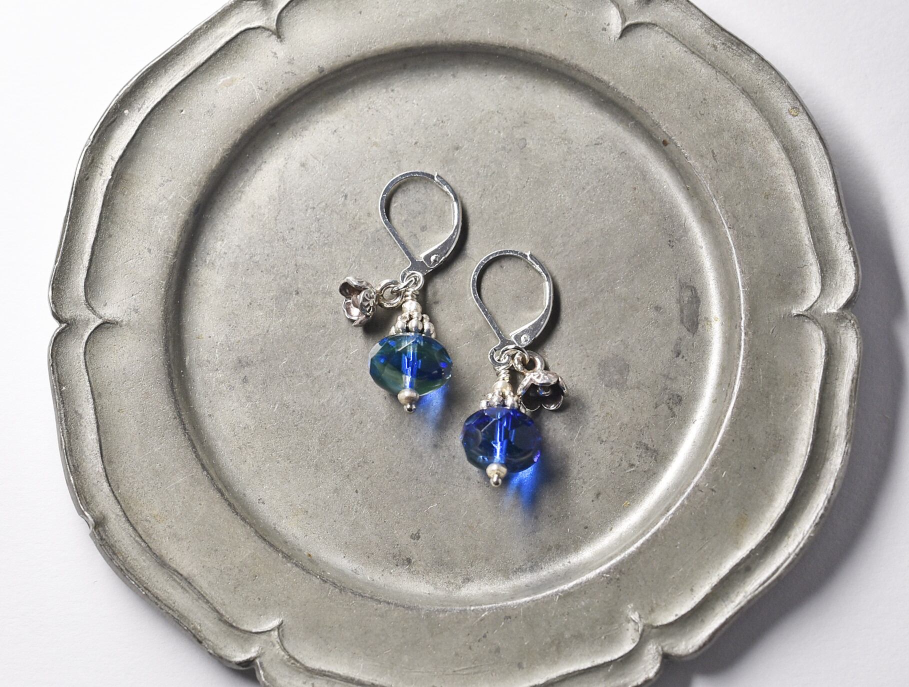 ウランガラスと小さなお花カレンシルバーのピアス(ブルー)