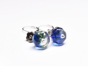 多面体が施された数種類の色合いがミックされたビーズはウランガラスです。