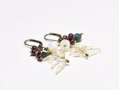 ドイツヴィンテージのツバメとたわわなガーネット、白蝶貝のすずらん、モスアゲートのピアス