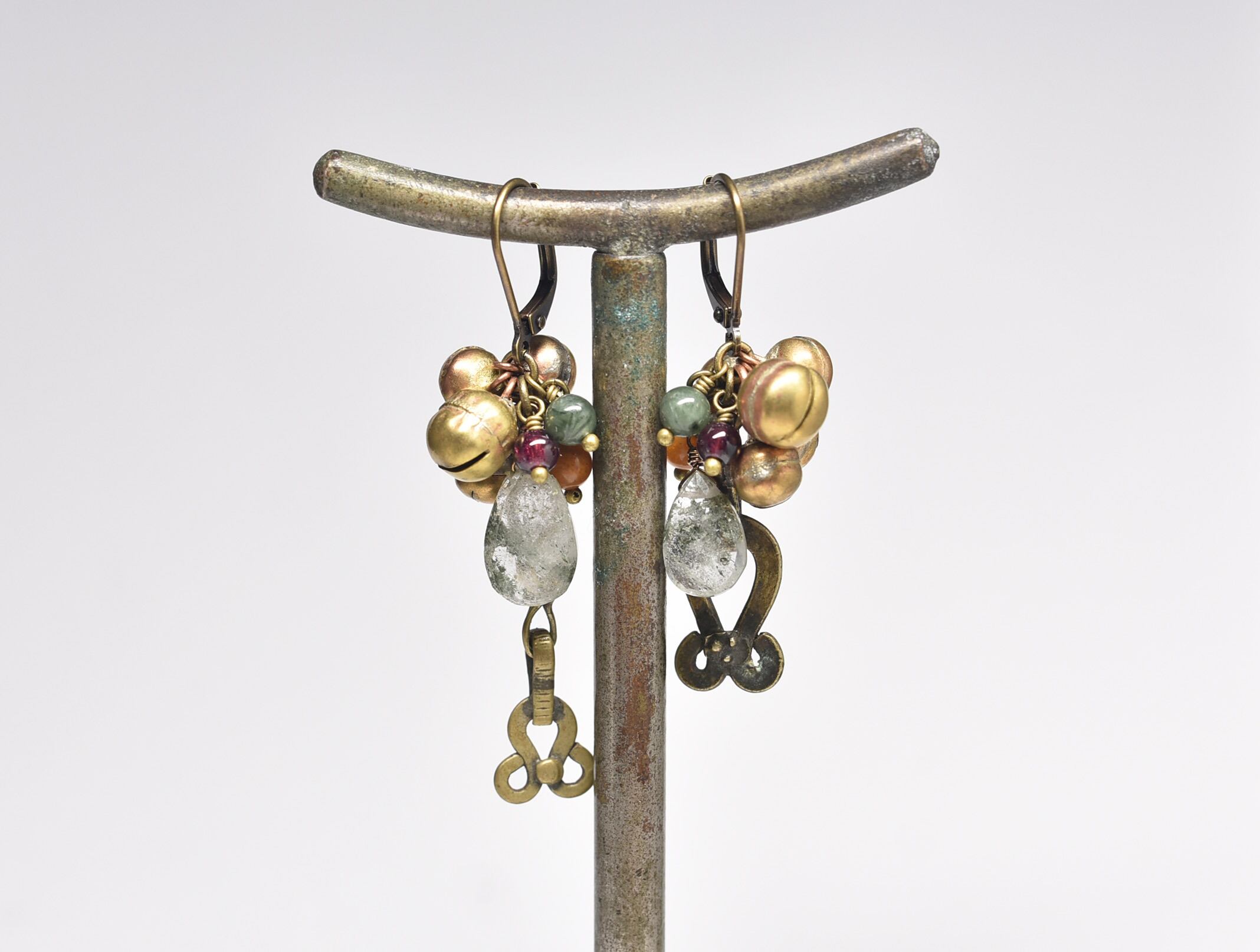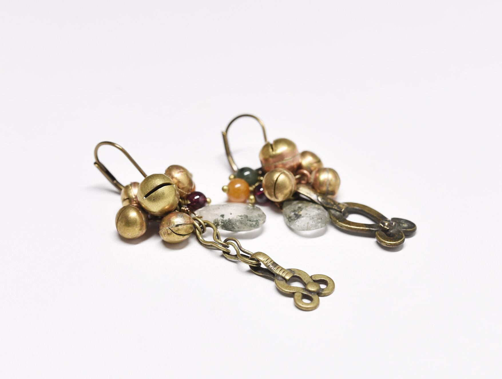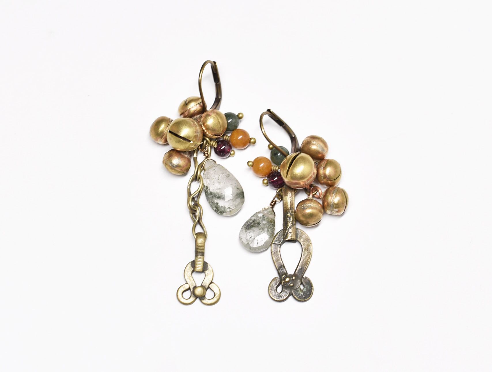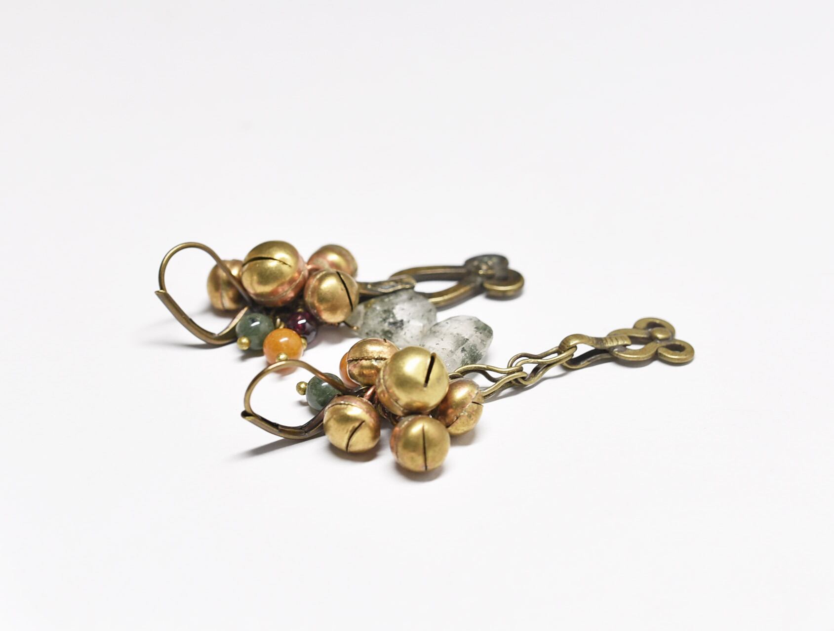 アフガンパーツ、たわわな鈴とストーンビーズのアンシメトリーピアス