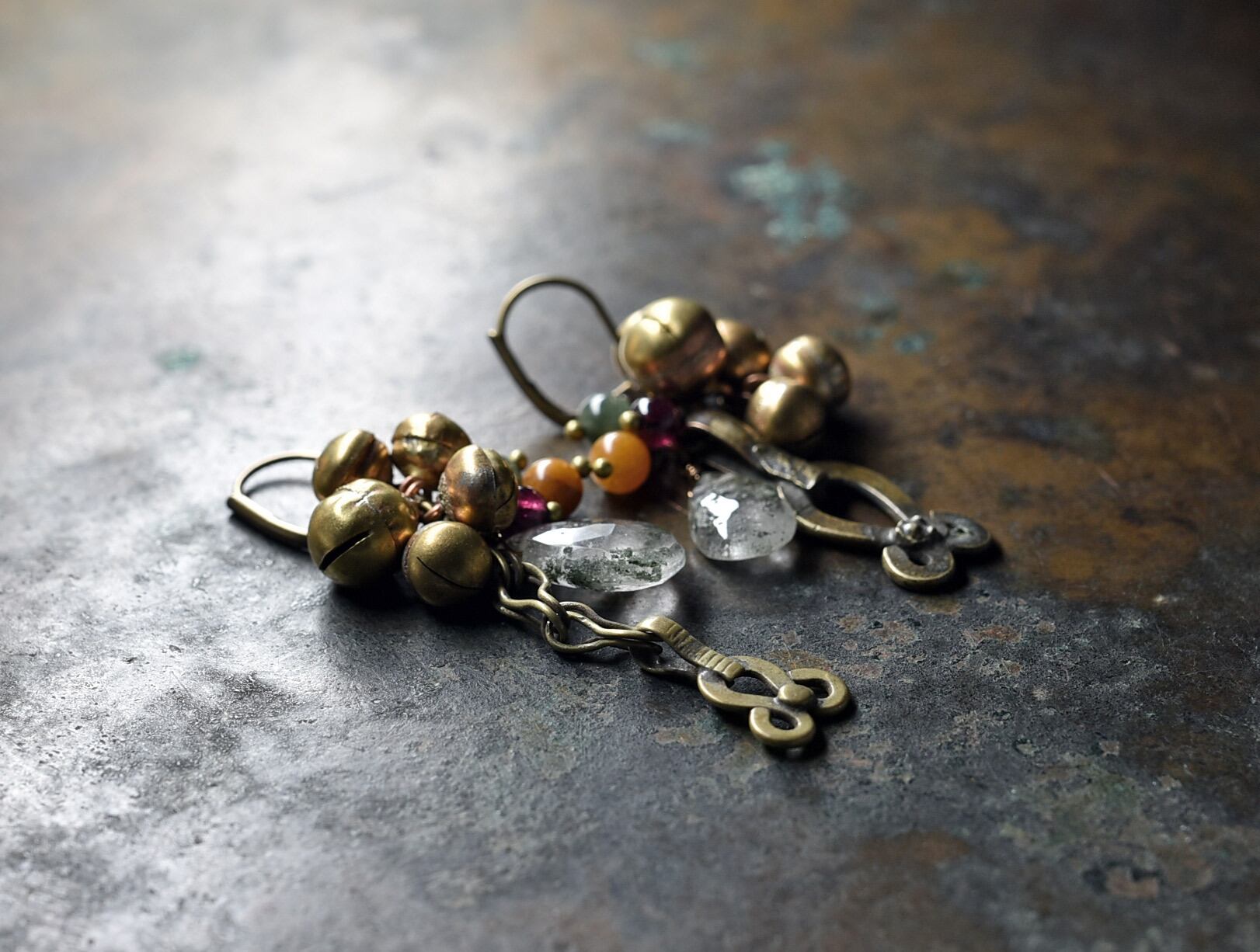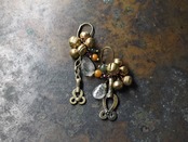 アフガンパーツとたわわな鈴とストーンビーズを繋いだアンシメトリーなピアスです。