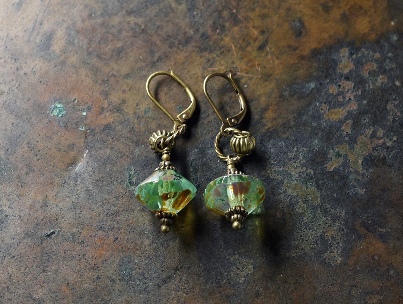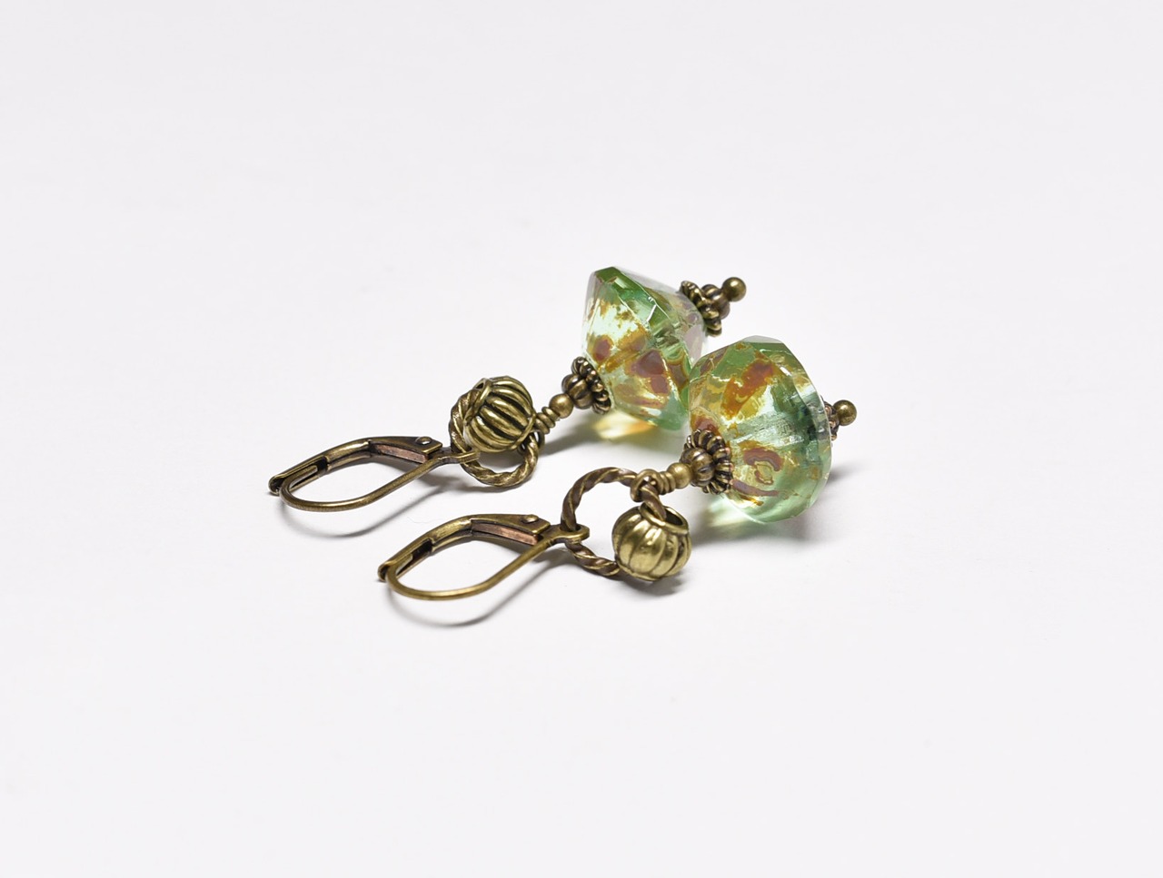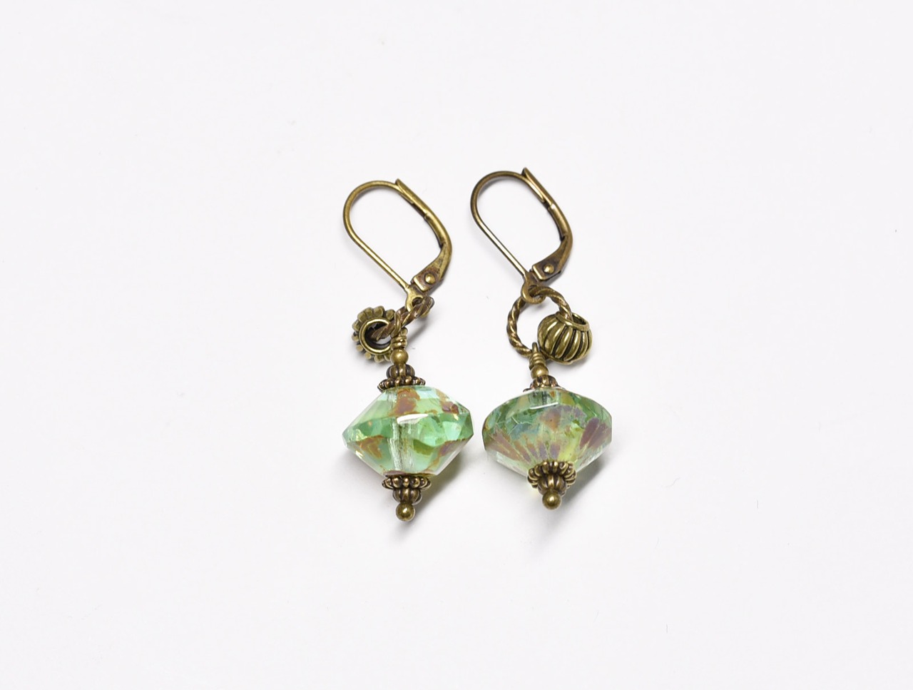 算盤型ウランガラスをリングへ繋いだピアスです。