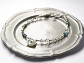 ピーコッククォーツとラブラドライト、モスアゲート、アンティークビーズ、インディアンアゲート、カレンシルバー繋いだブレスです。