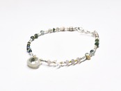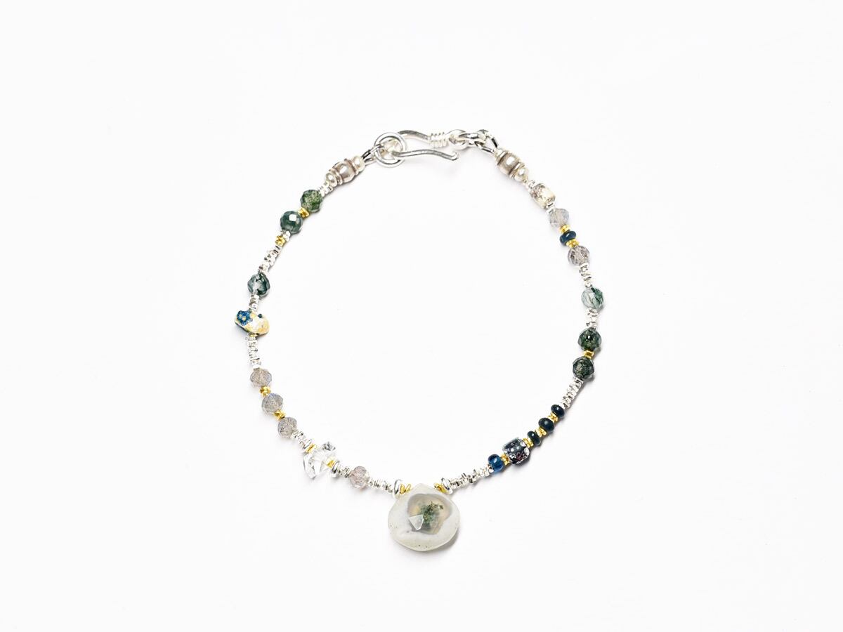 ピーコッククォーツとラブラドライト、モスアゲート、アンティークビーズ、カレンシルバーのブレス