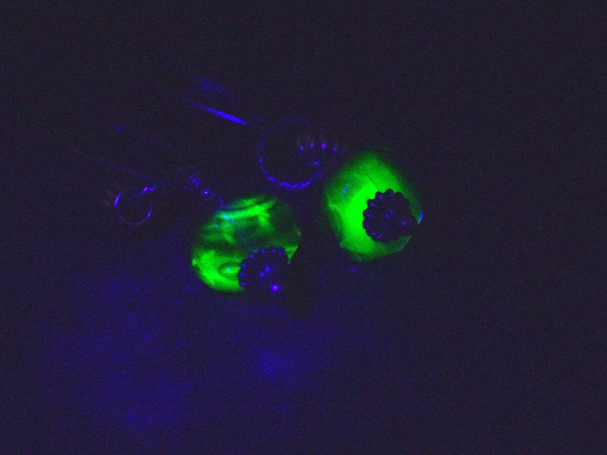 こちらはチェコ産の現行品です。ブラックライトを当てると蛍光します。