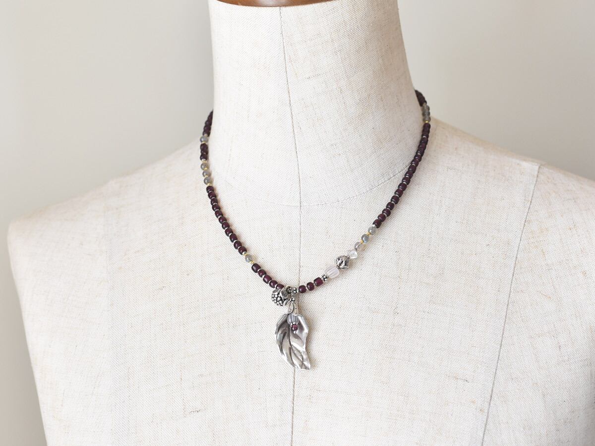 カレンシルバートップとパープルアンティークビーズ、グーズベリーとラブラドライトのネックレス