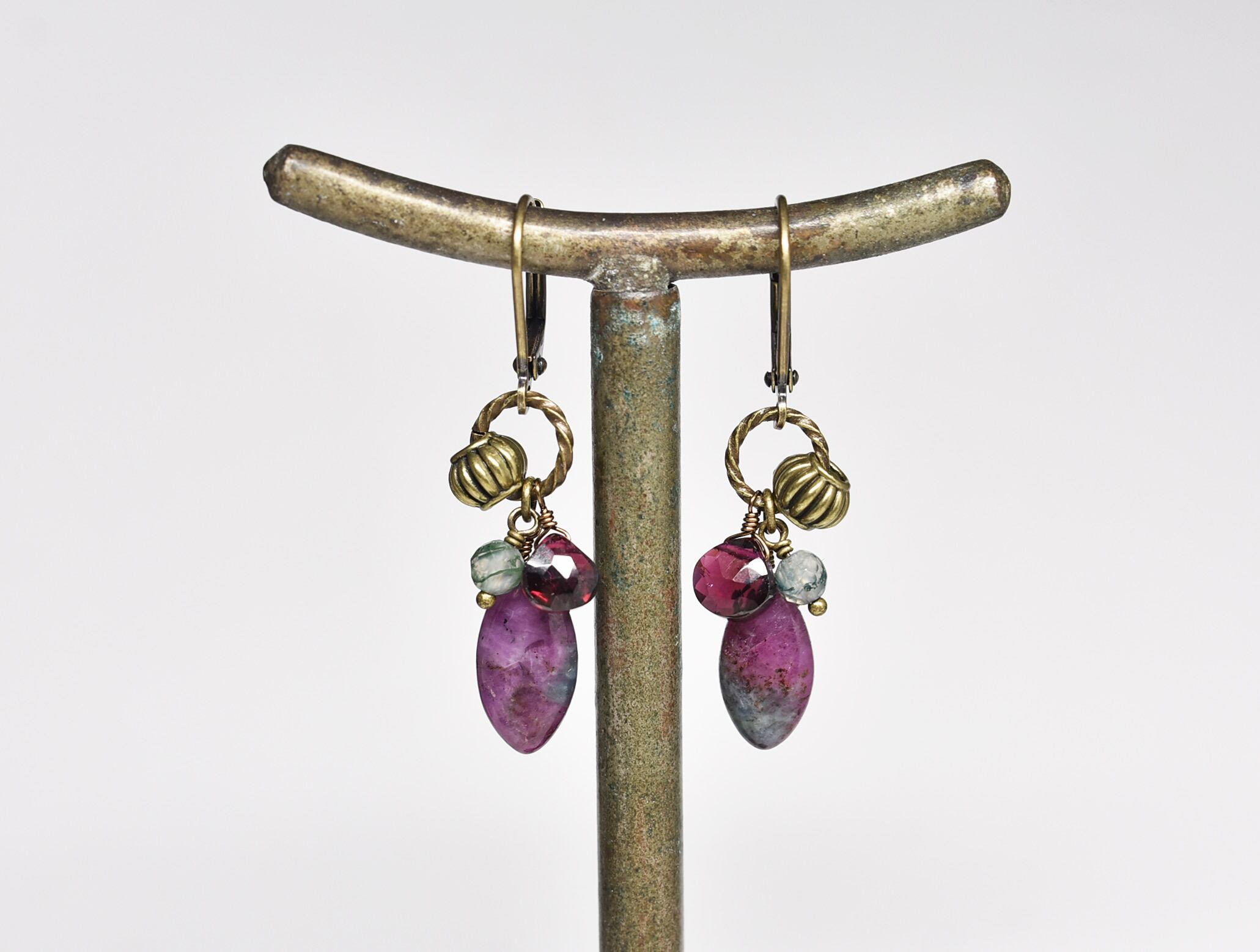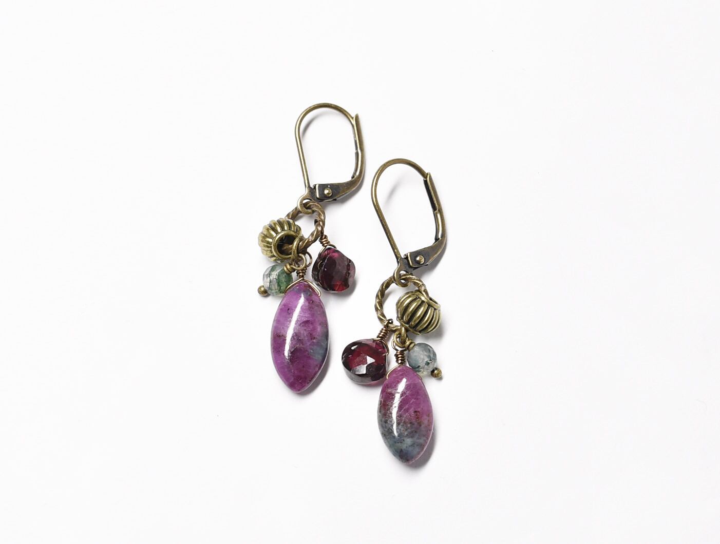 ルビーインゾイサイト、マロン型ガーネット、モスアゲートのリングピアス
