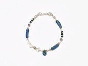 インディゴブルーカイヤナイト、ハーキマーダイヤモンド、ラブラドライト、ローマングラスと、アンティークビーズ煌めくカレンシルバーのブレス