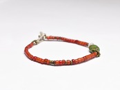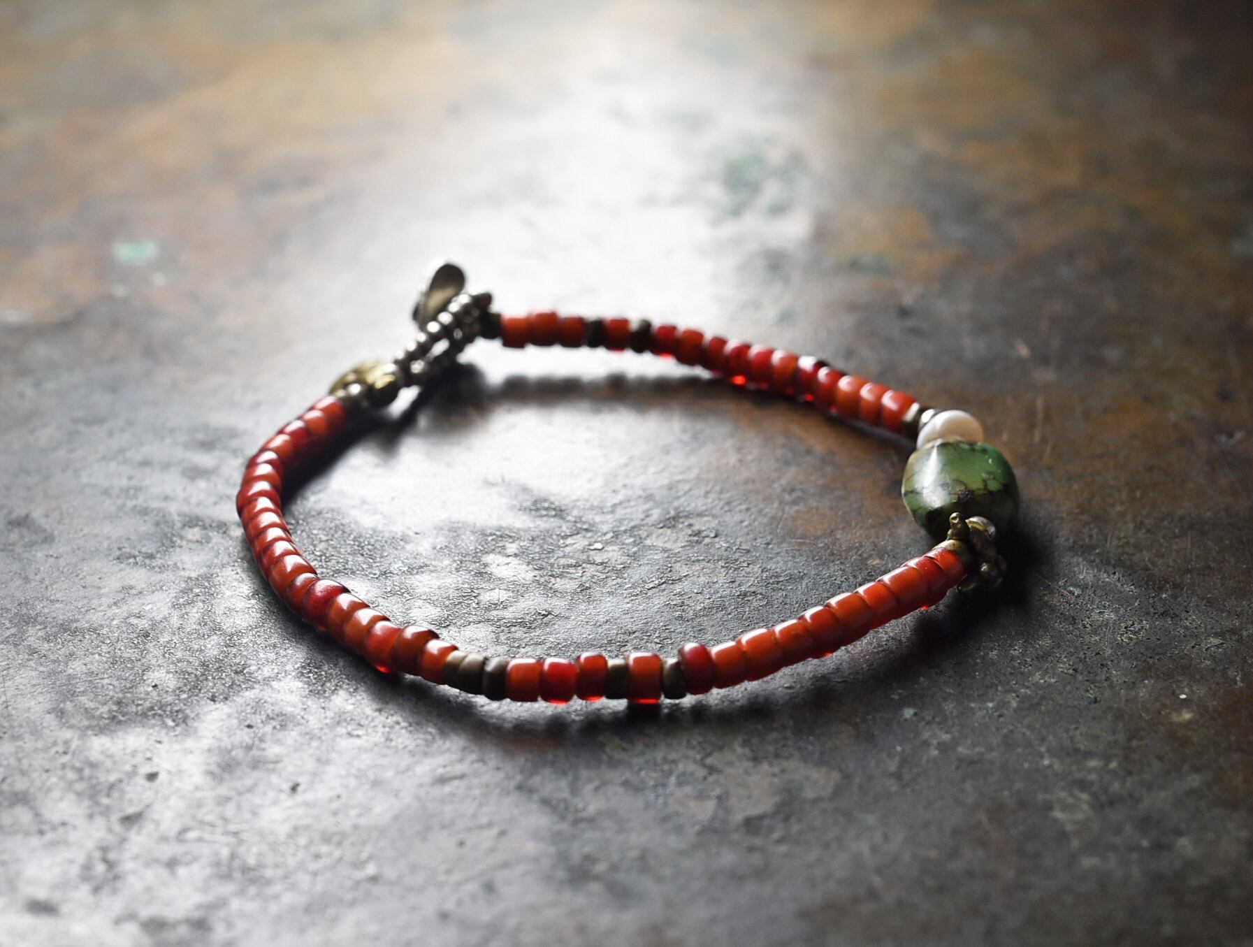 赤色のビーズはホワイトハーツと呼ばれるアンティークビーズです。芯(ハート)部分が白いことからこう呼ばれています。