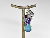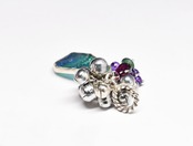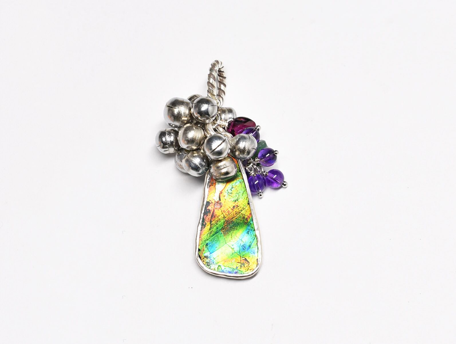 シルバー枠銀化ローマングラスとたわわな鈴とアメジスト、モスアゲート、アメジストのペンダントトップ