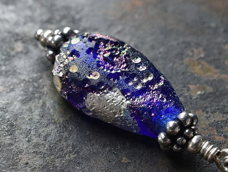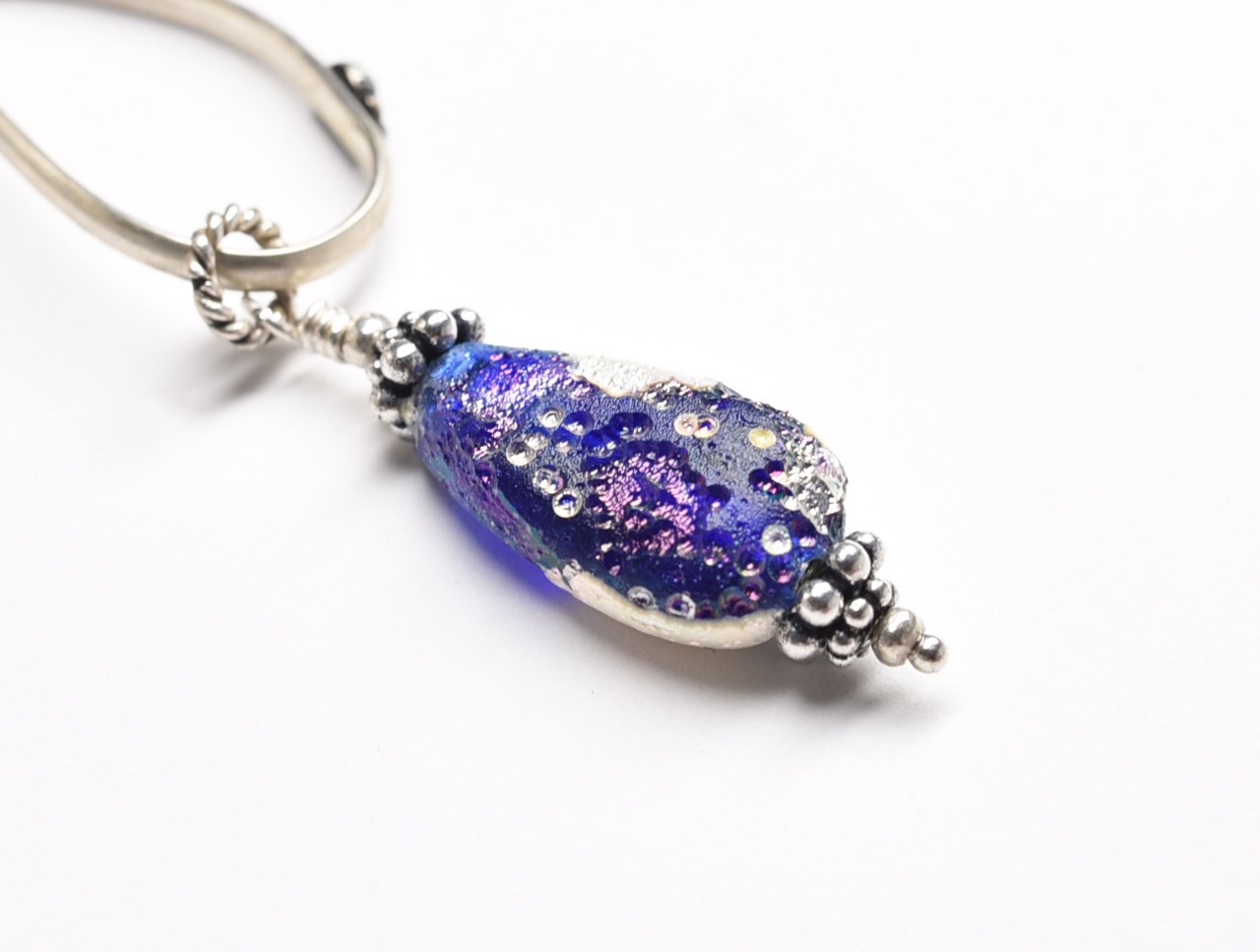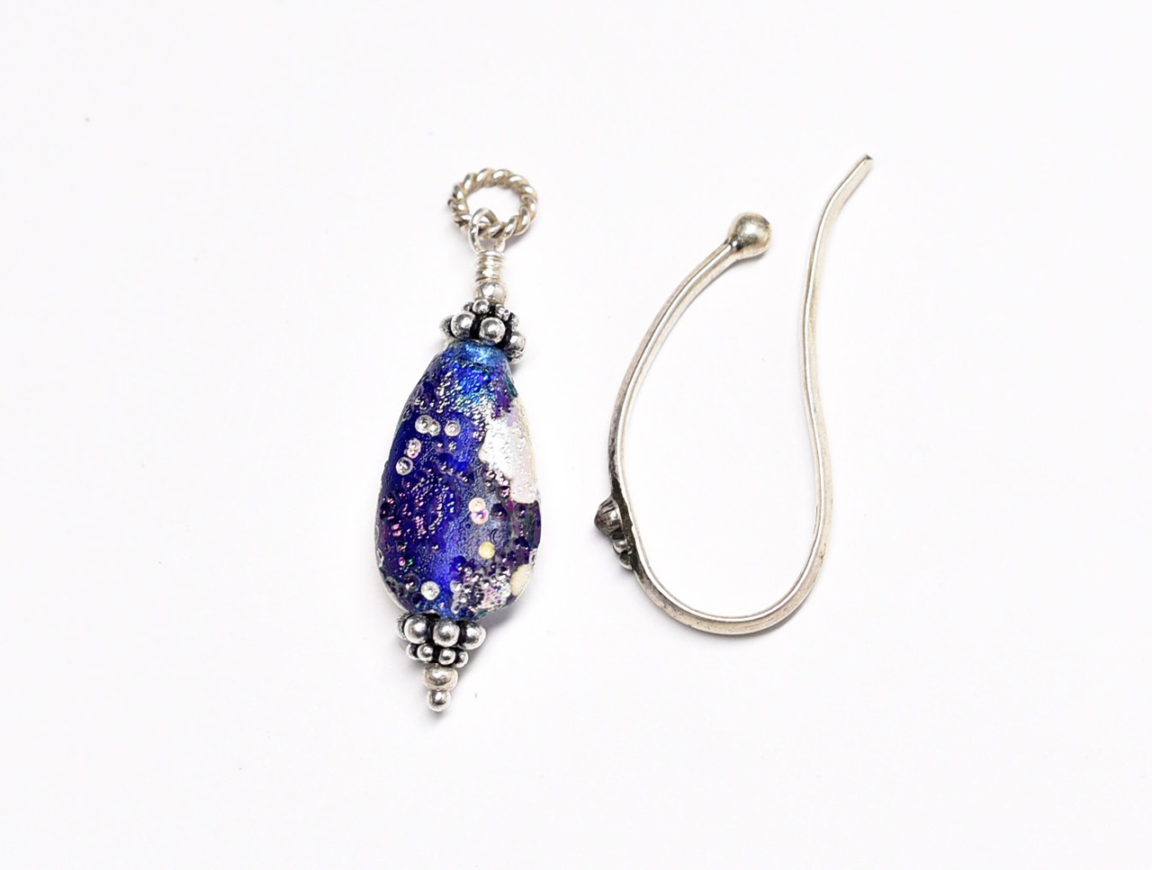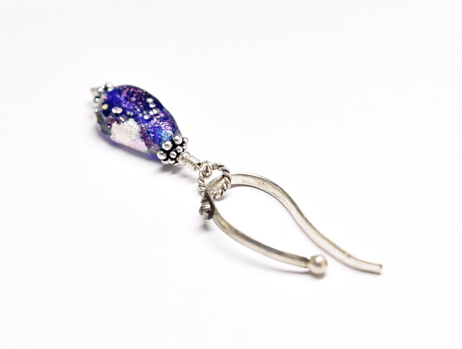 雫型瑠璃色極上銀化ローマングラスビーズのインドシルバーイヤーカフ