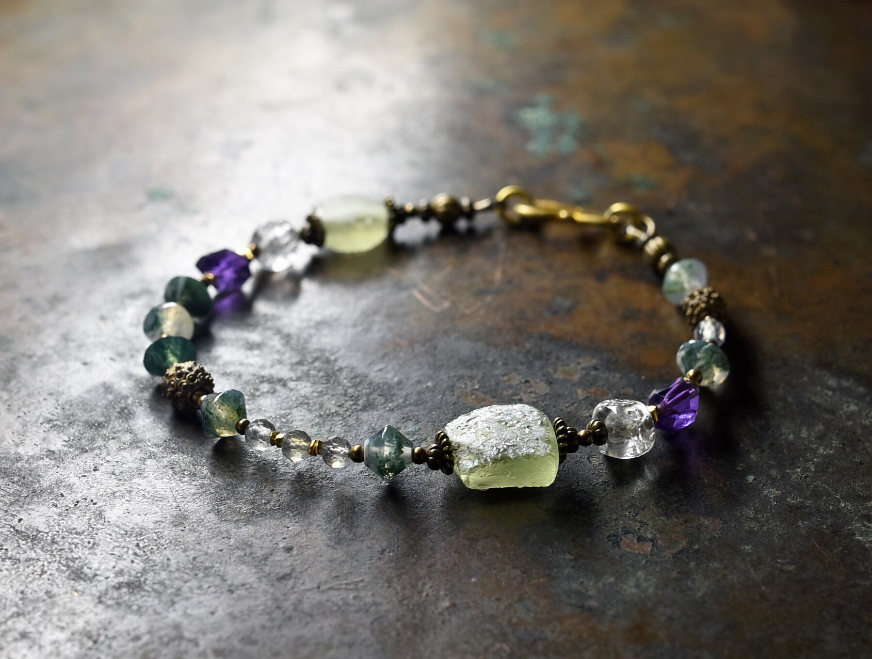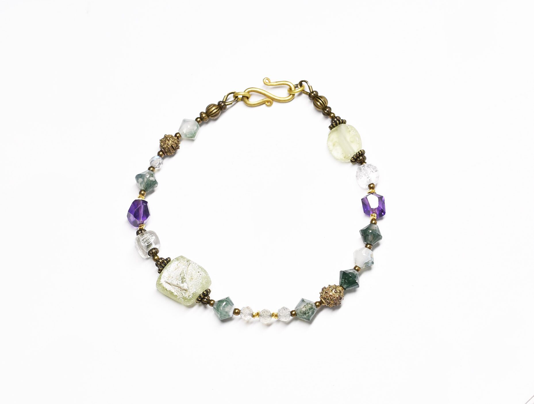 古代ガラスの味わいと天然石の美しさが楽しめるブレスです。