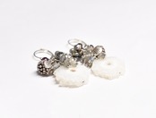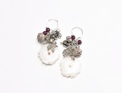 ソーラークォーツとたわわなラブラドライト、ガーネット、ブラックルチルとコロンとしたカレンシルバー、小さな鈴を繋いだピアスです。