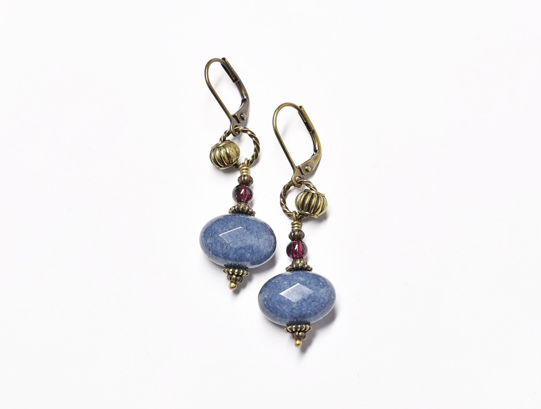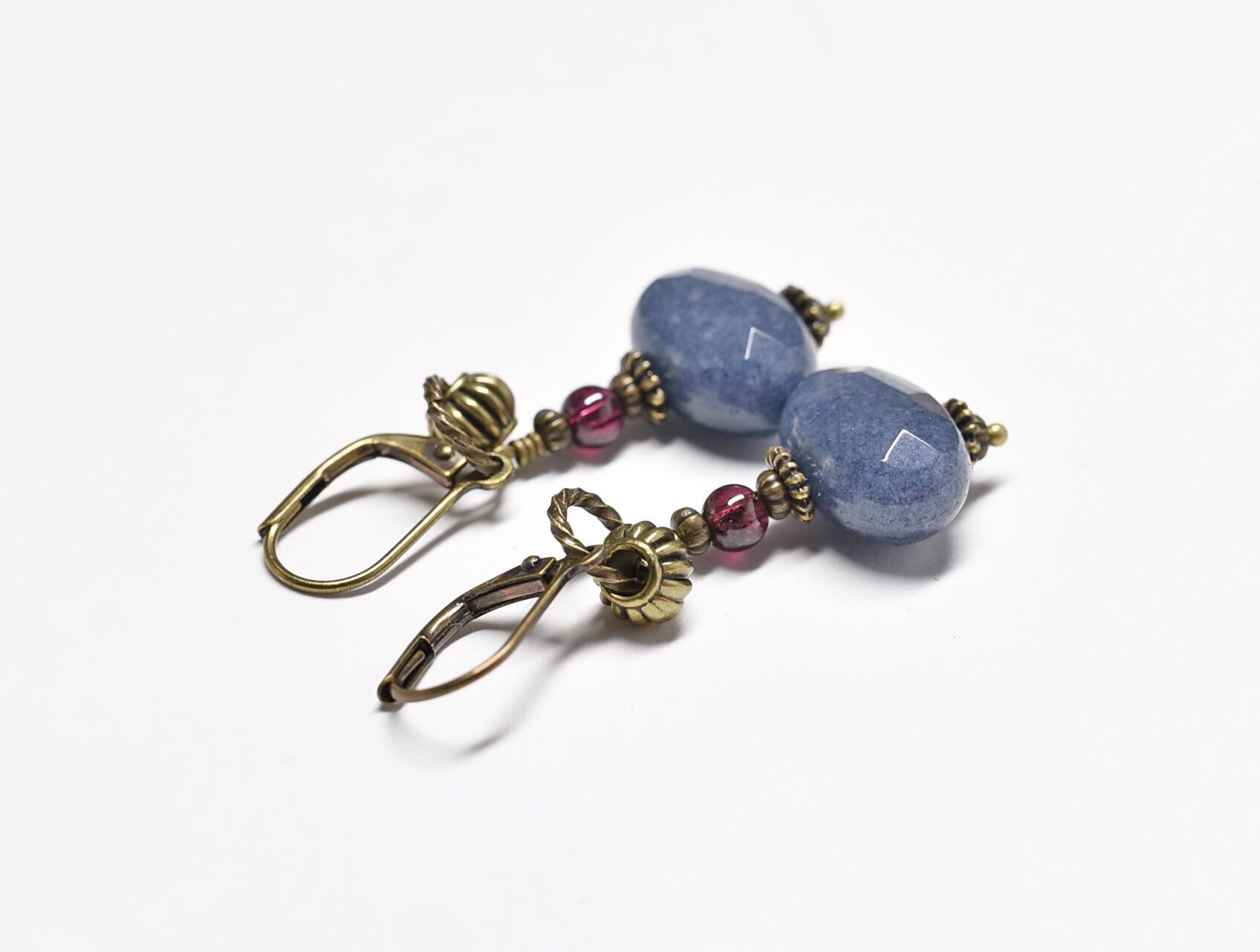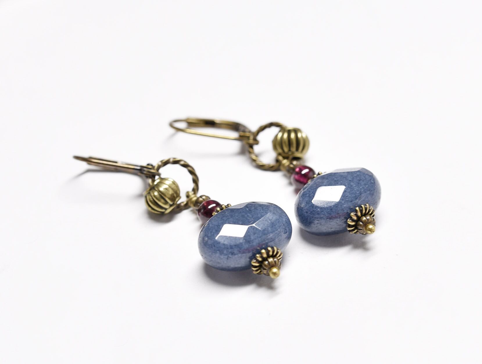 サファイアアゲートとガーネットのリングピアス