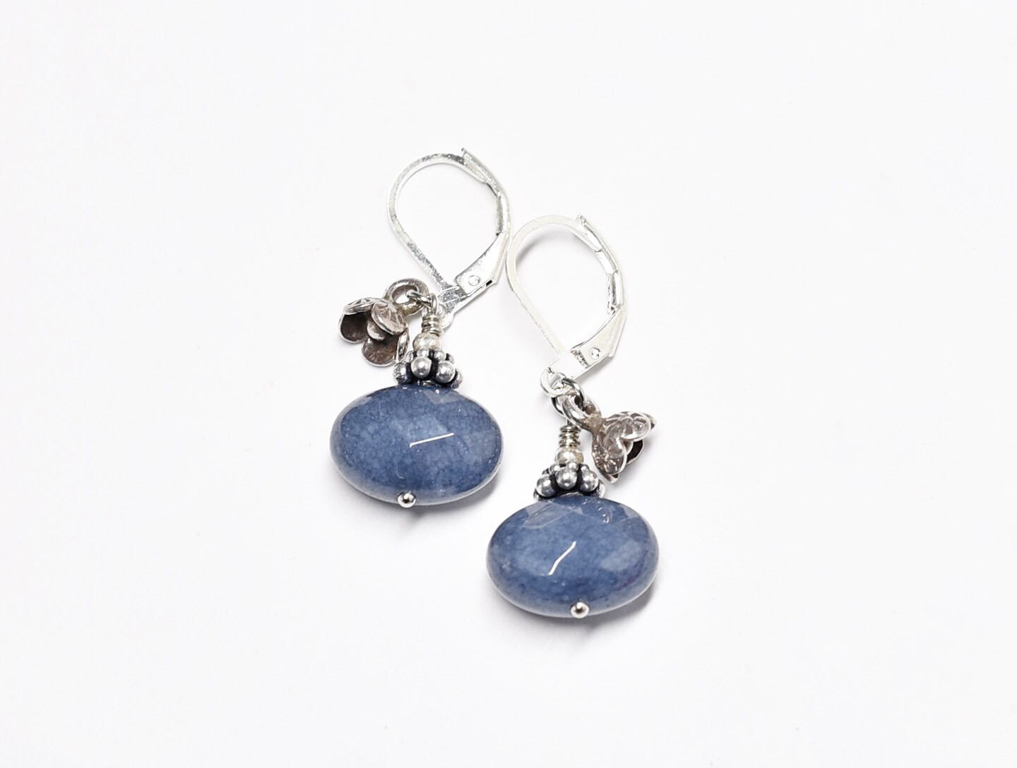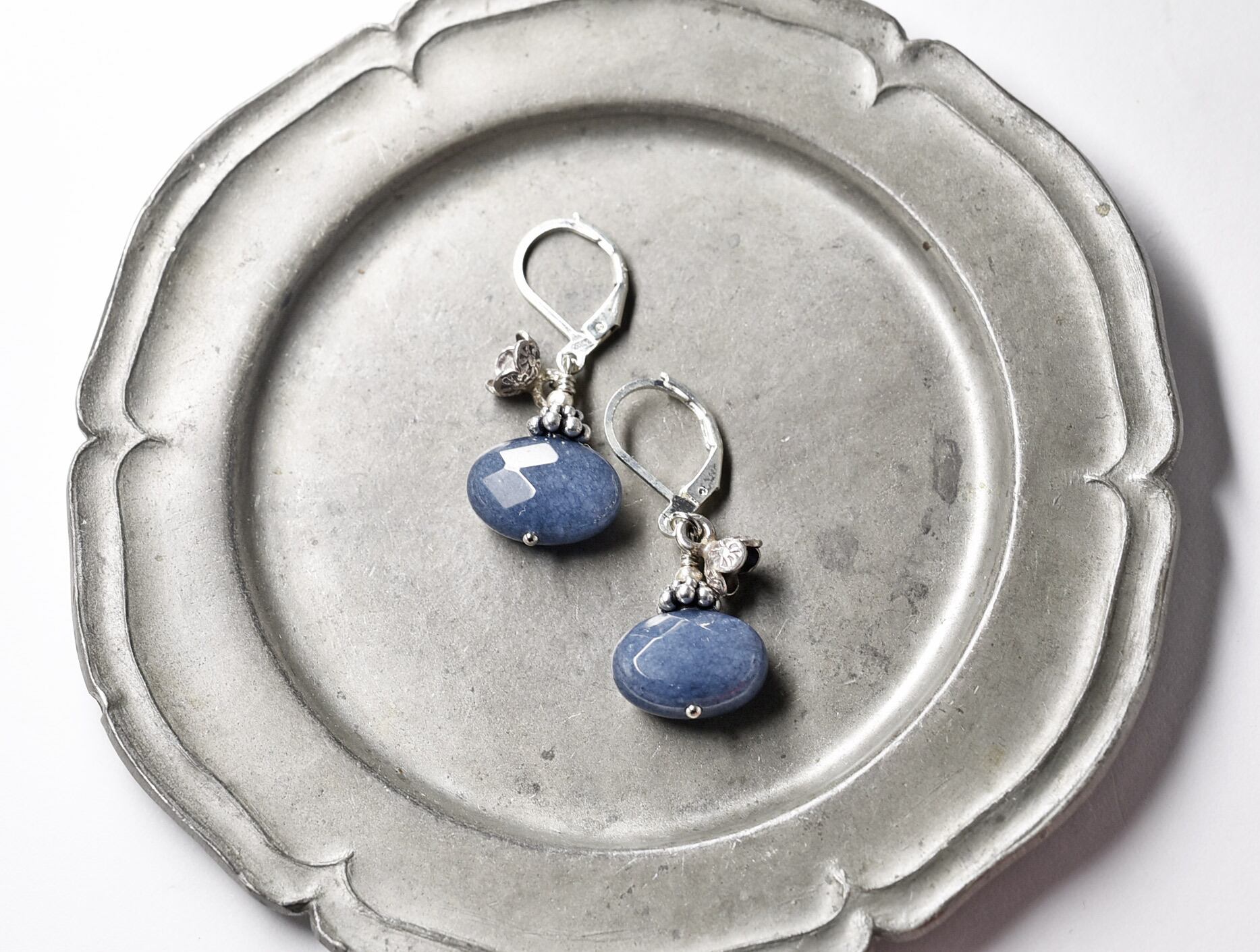 サファイアアゲートと小さなカレンシルバーのお花ピアス