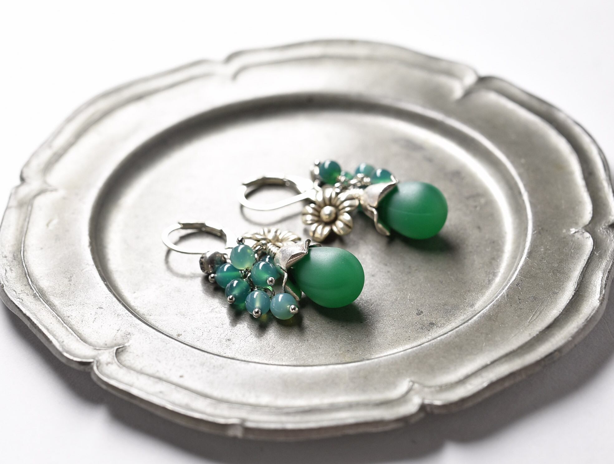 素材:カレンシルバー、ガラス、グリーン瑪瑙、シルバー