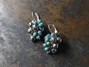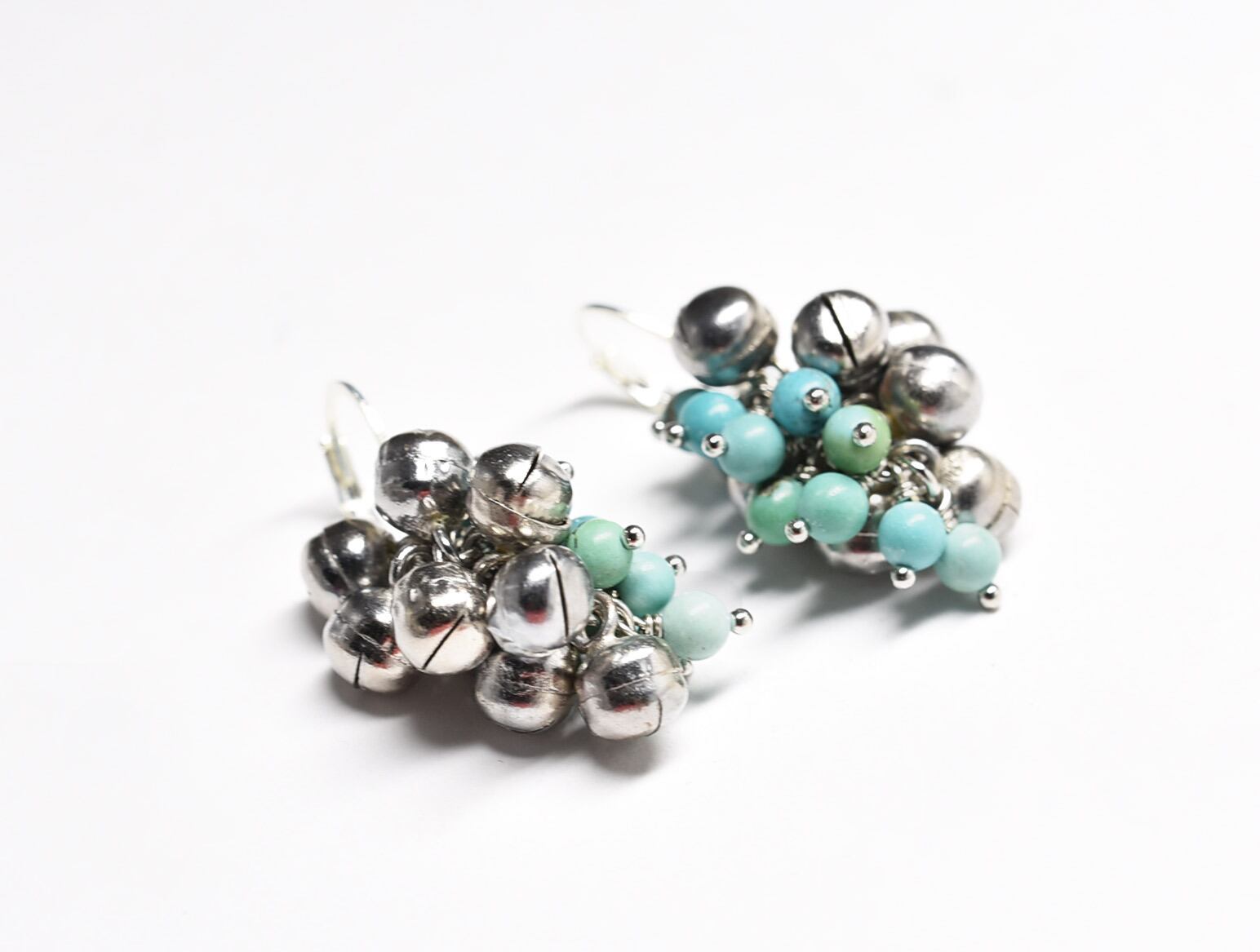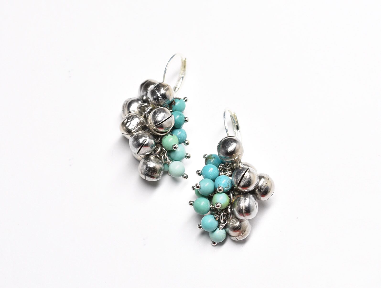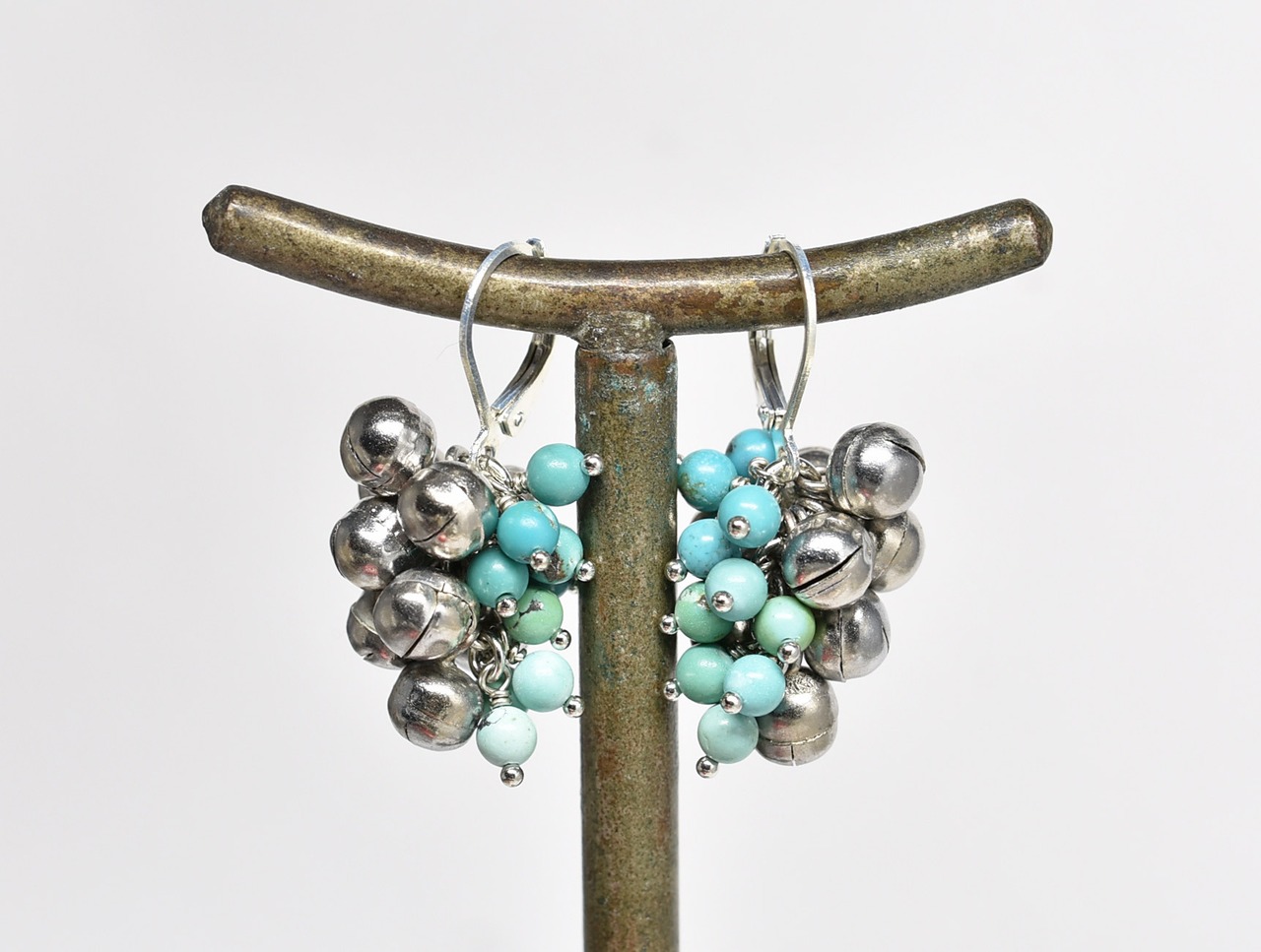 たわわな鈴とターコイズを繋いだ少しボリュームのあるピアスです。