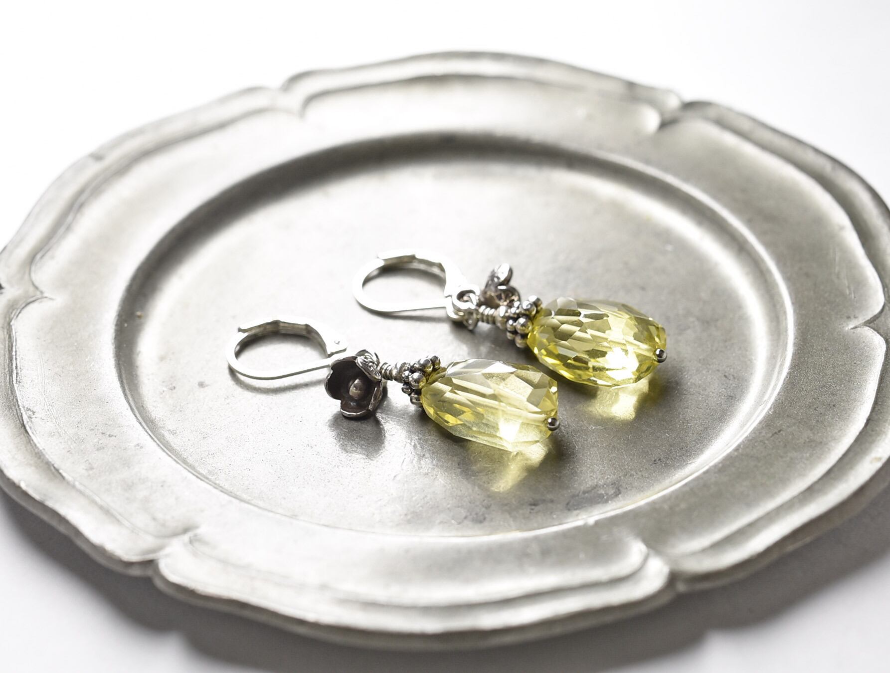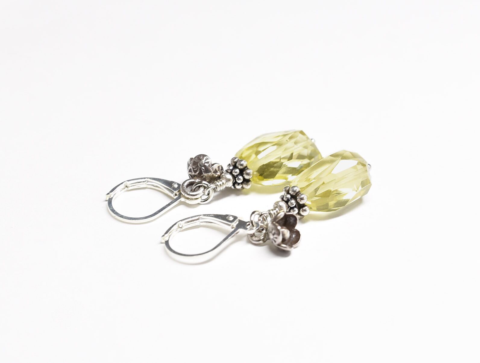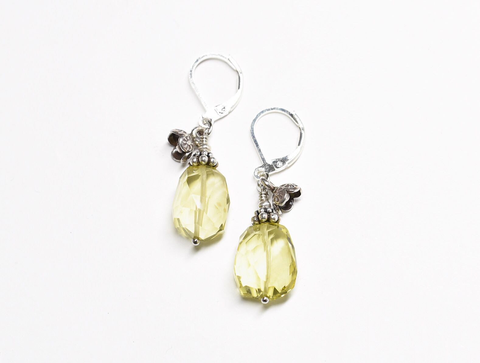 カットレモンクォーツと小さなカレンシルバーのお花ピアス