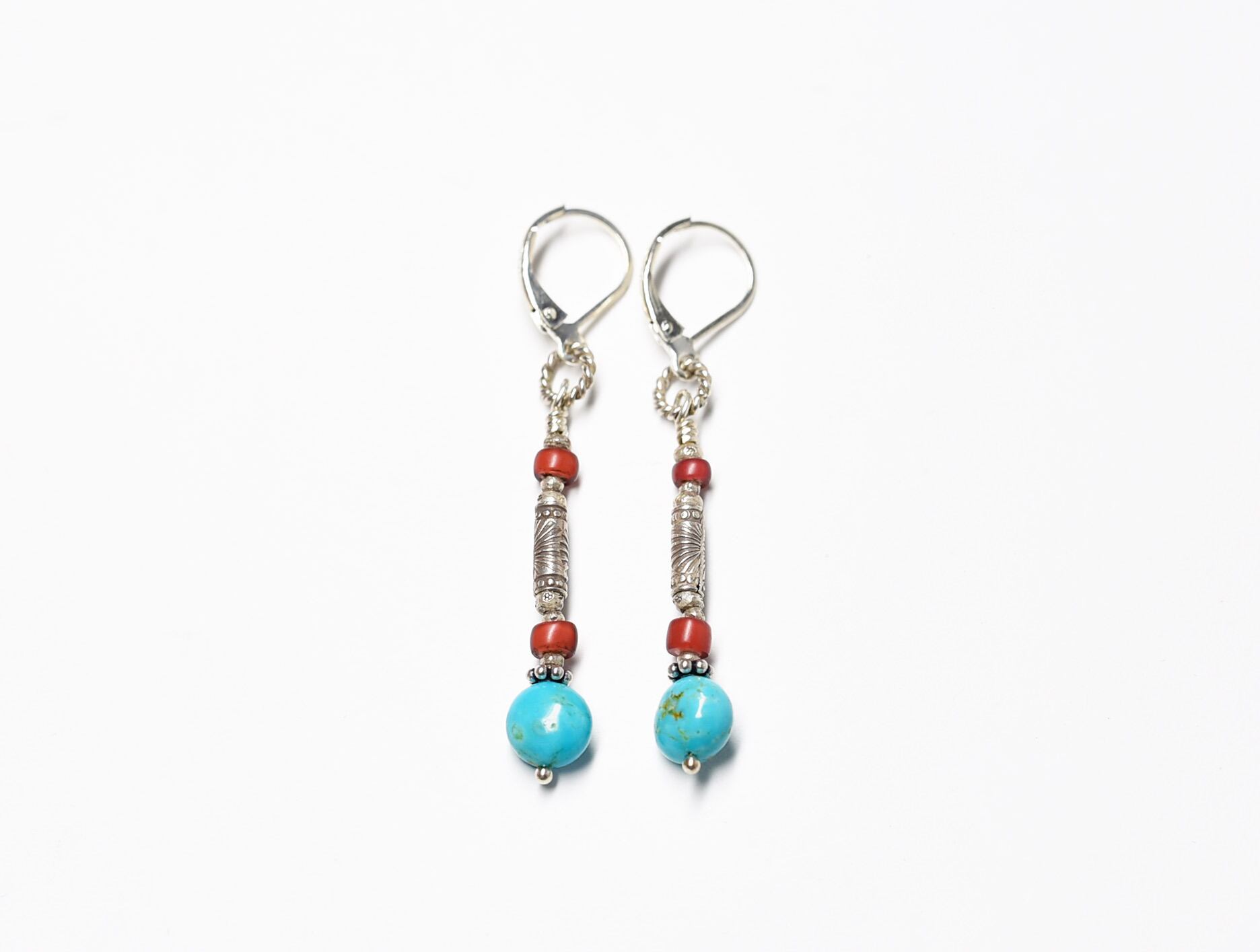 素材:ターコイズ、ガラス、カレンシルバー、シルバー
