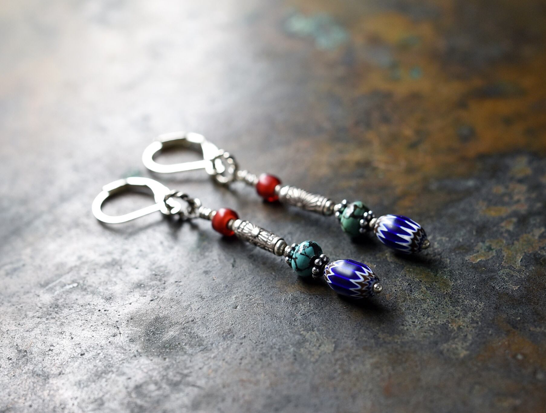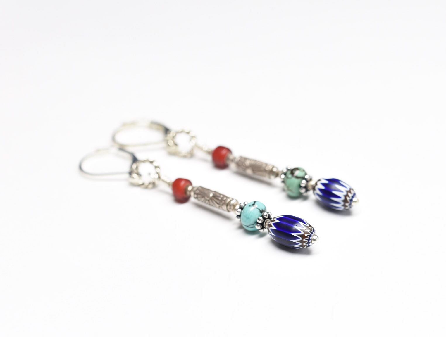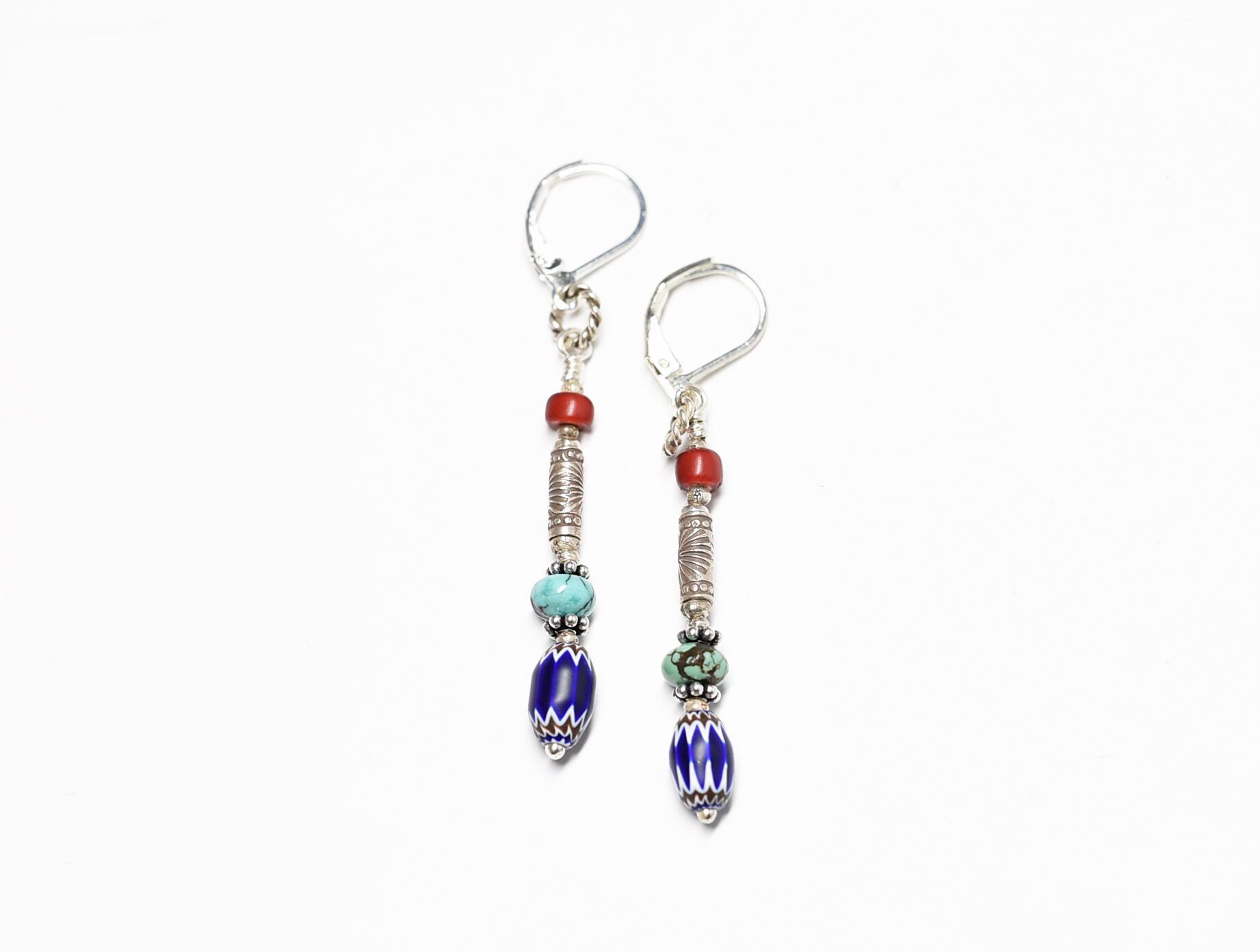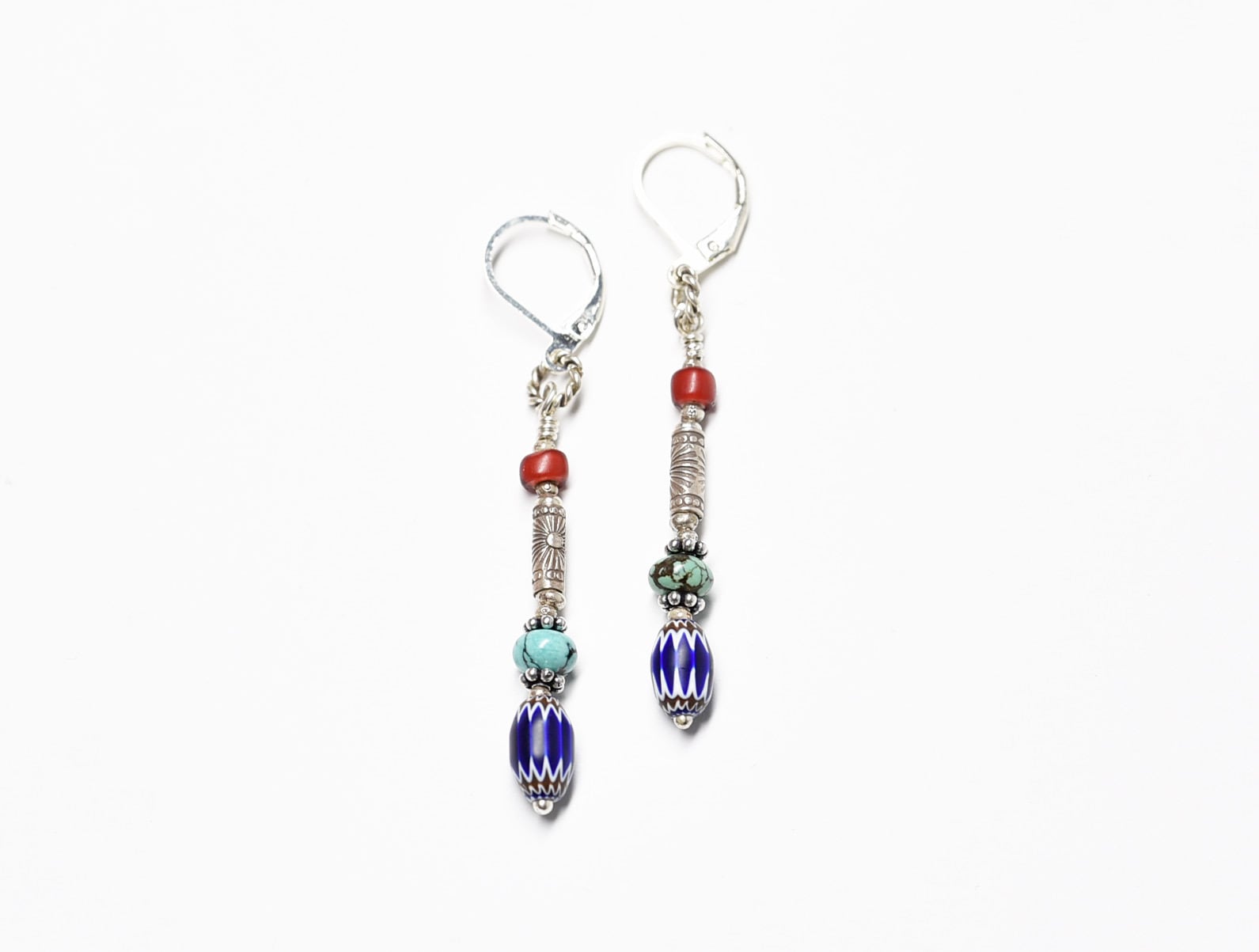 素材:ガラス、ターコイズ、カレンシルバー、シルバー