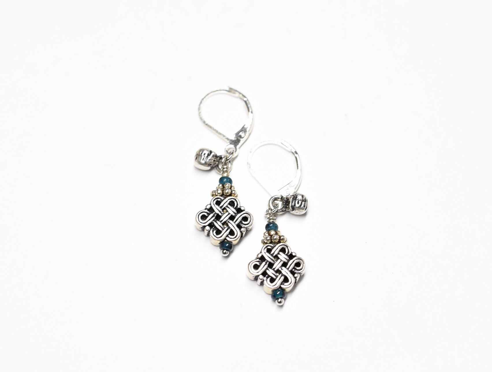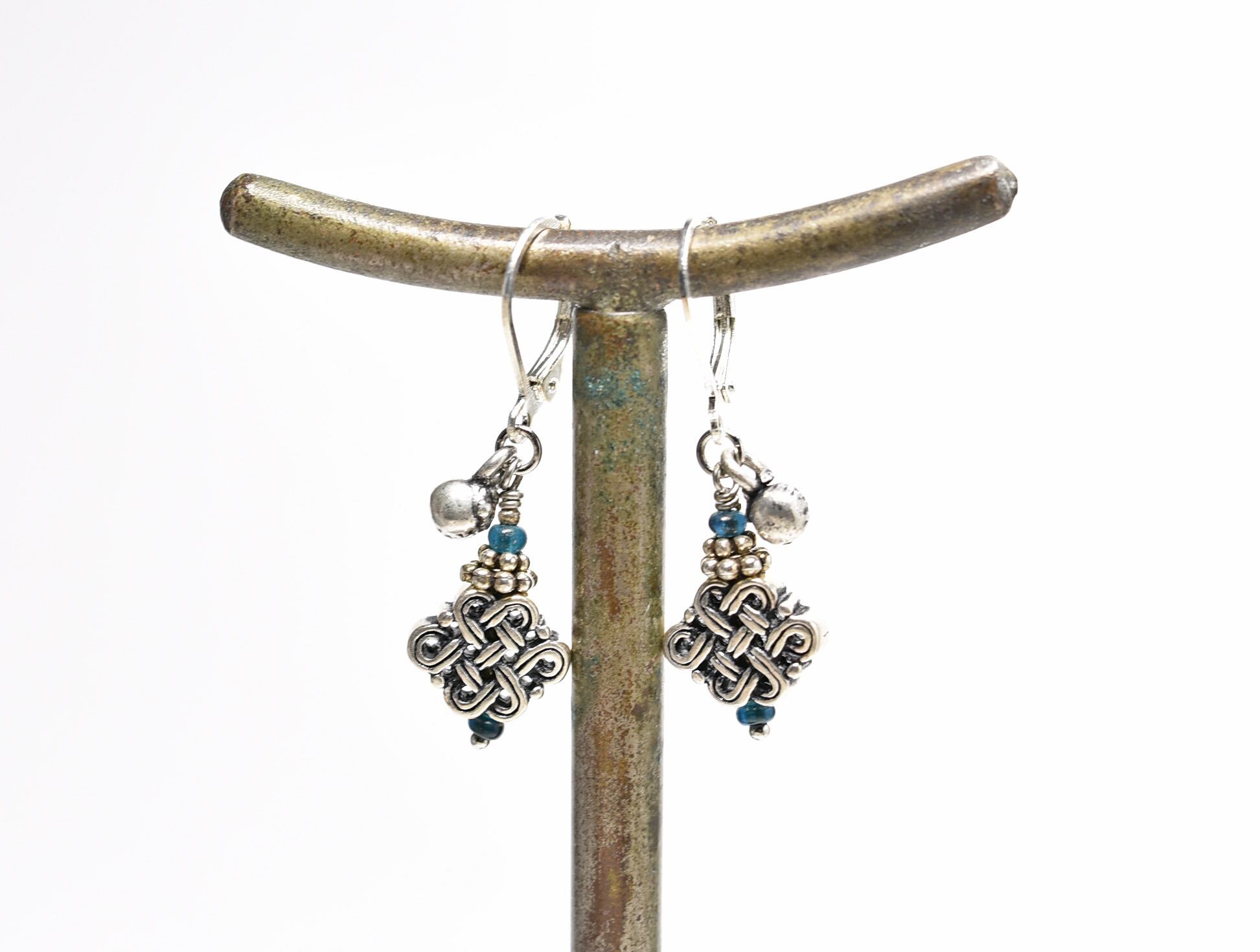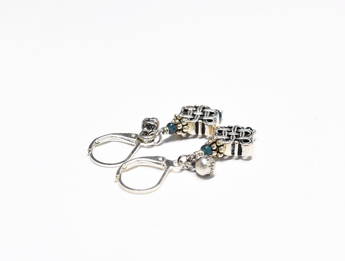 エンドレスノットとインディゴブルービーズ、インドシルバーの小さな鈴のピアス
