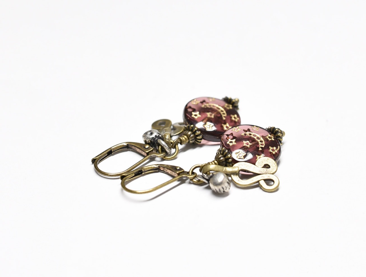 月と星の模様が施された聖者のビーズと、小さな鈴を繋いだピアスです。