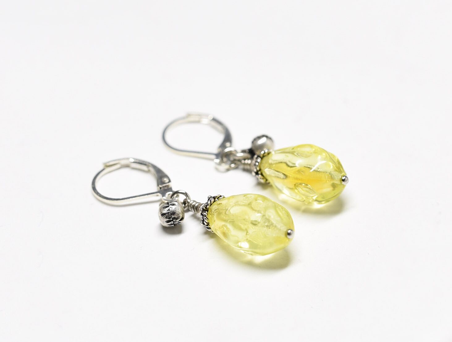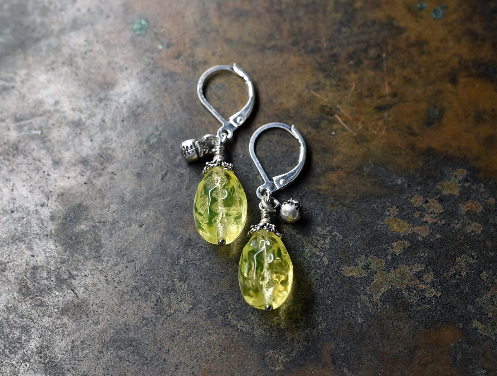 ヴィンテージウランガラスとインドシルバー鈴のピアス(イエロー)