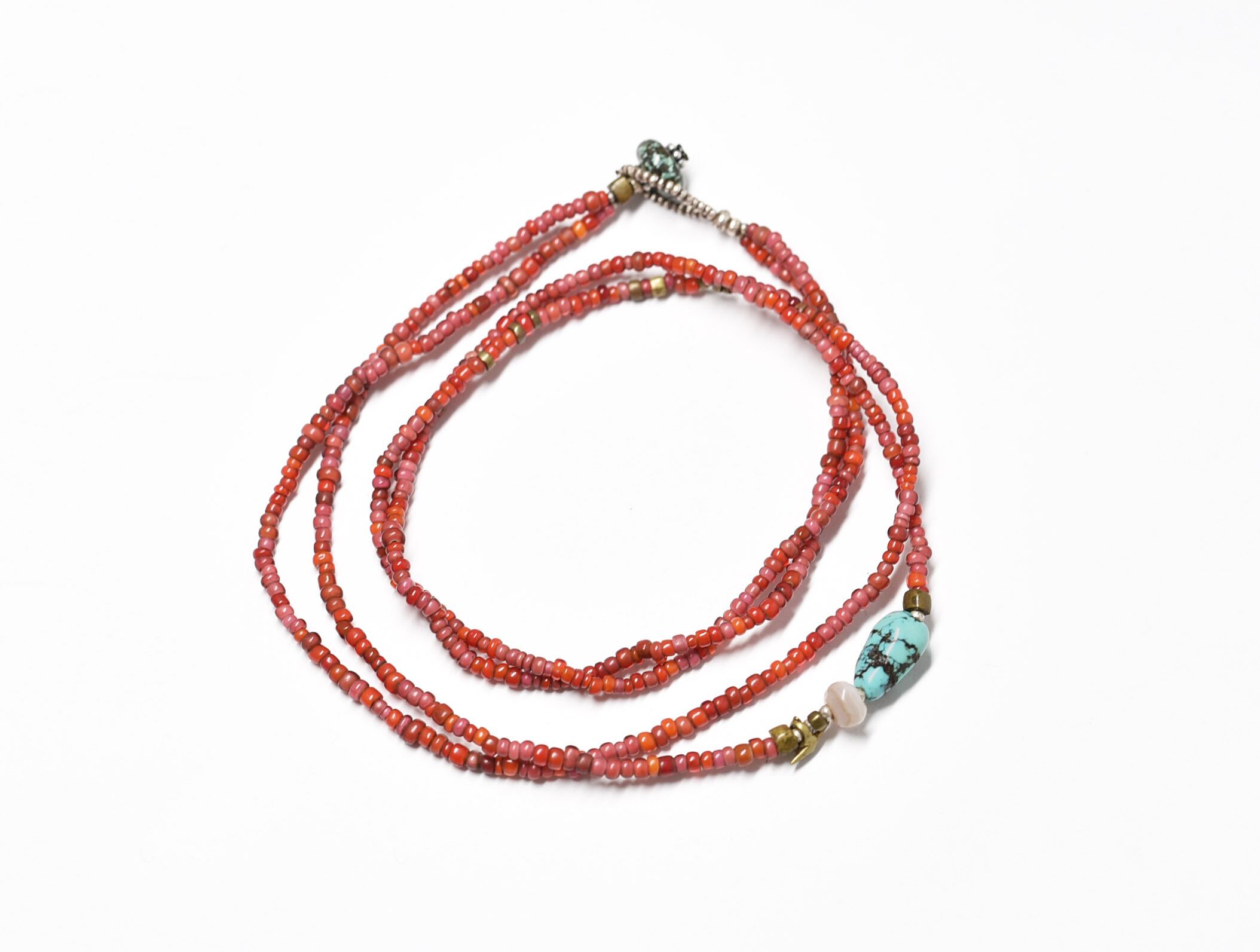 oldチベタンターコイズと古代瑪瑙、色んなホワイトハーツの2連ネックレス(ターコイズ留め金)