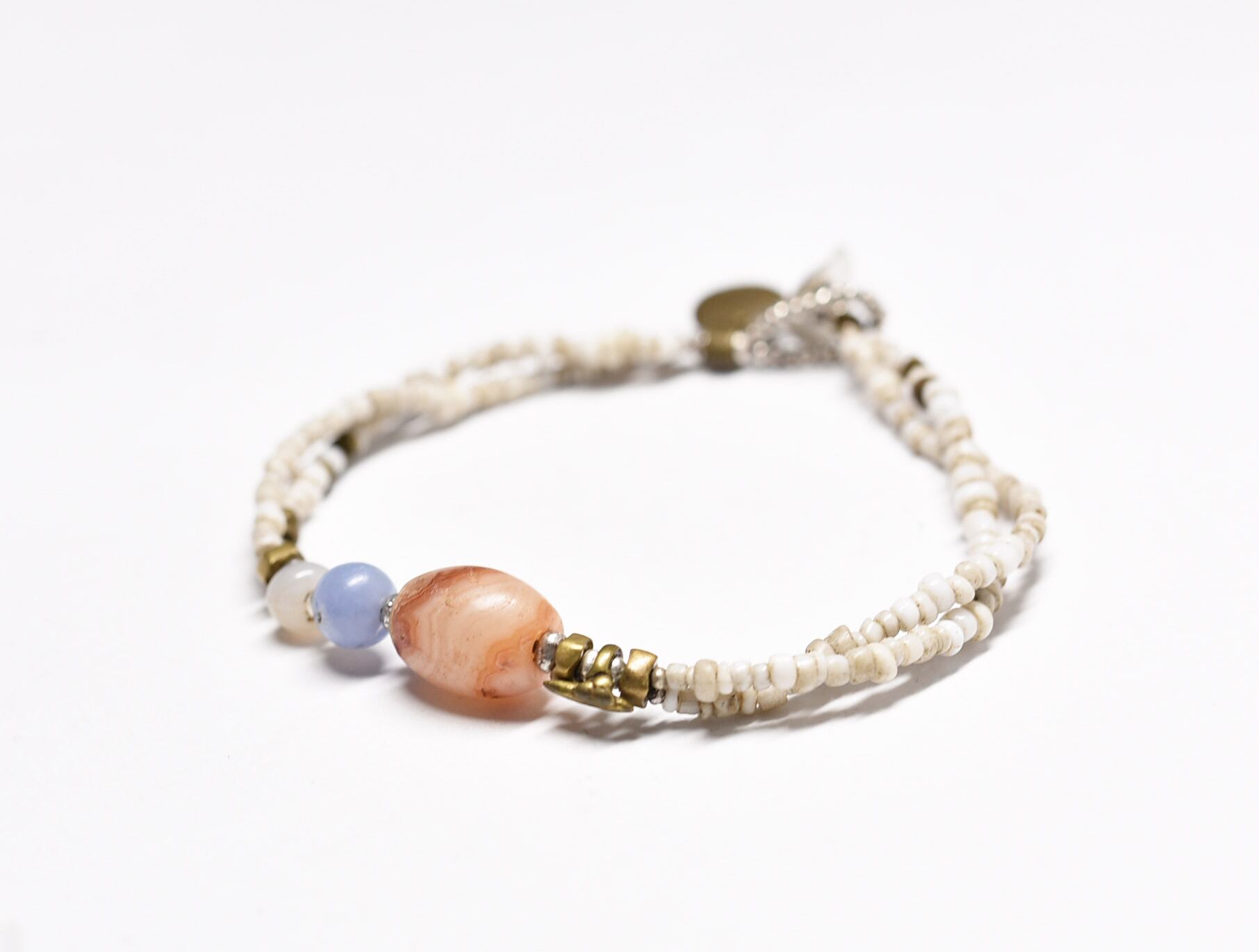 古代ストーンビーズを贅沢に使った、優しい印象のブレスです。