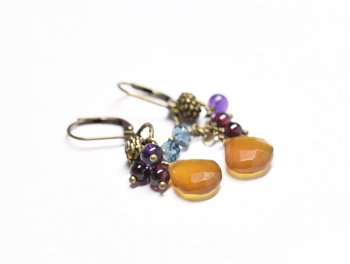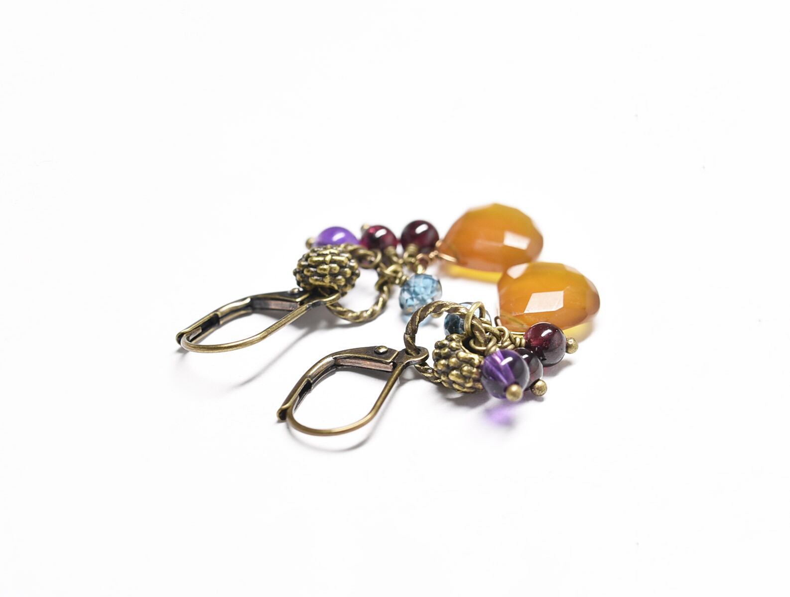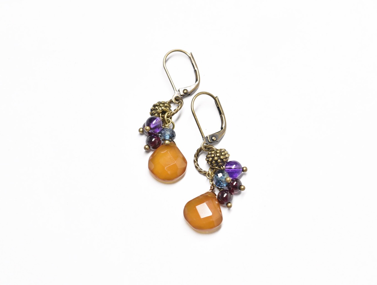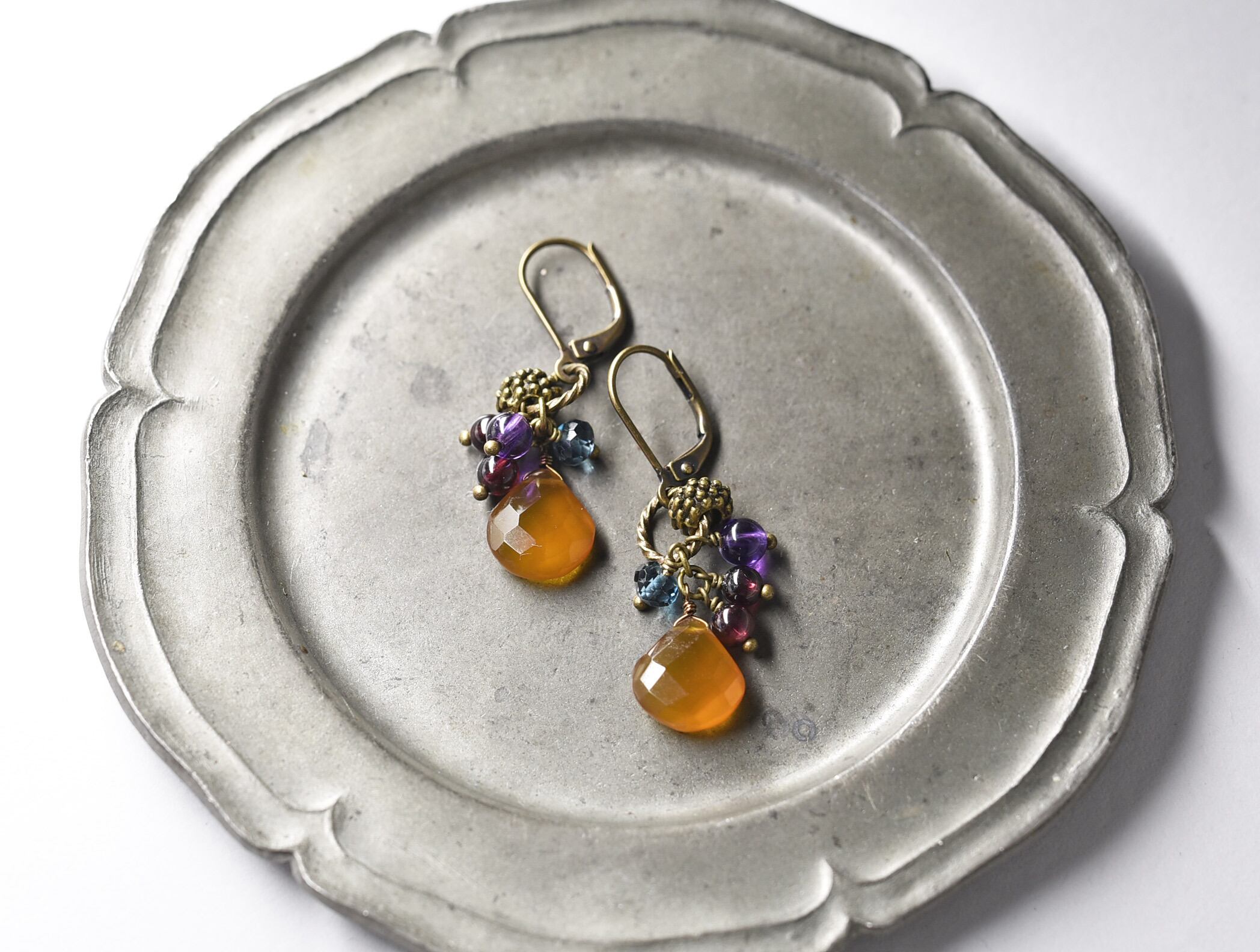 カルセドニーとロンドンブルートパーズ、アメジスト、ガーネットのピアス