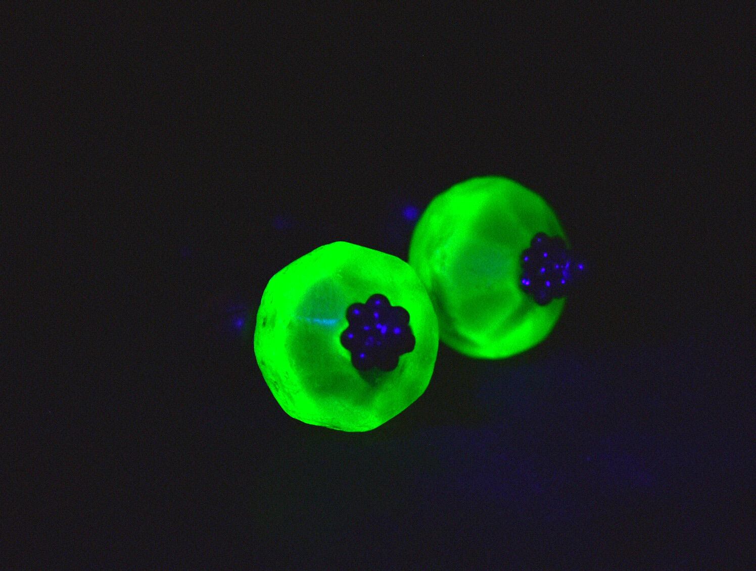 (ウランガラスの大きさ:縦1cm 直径1.5cm)