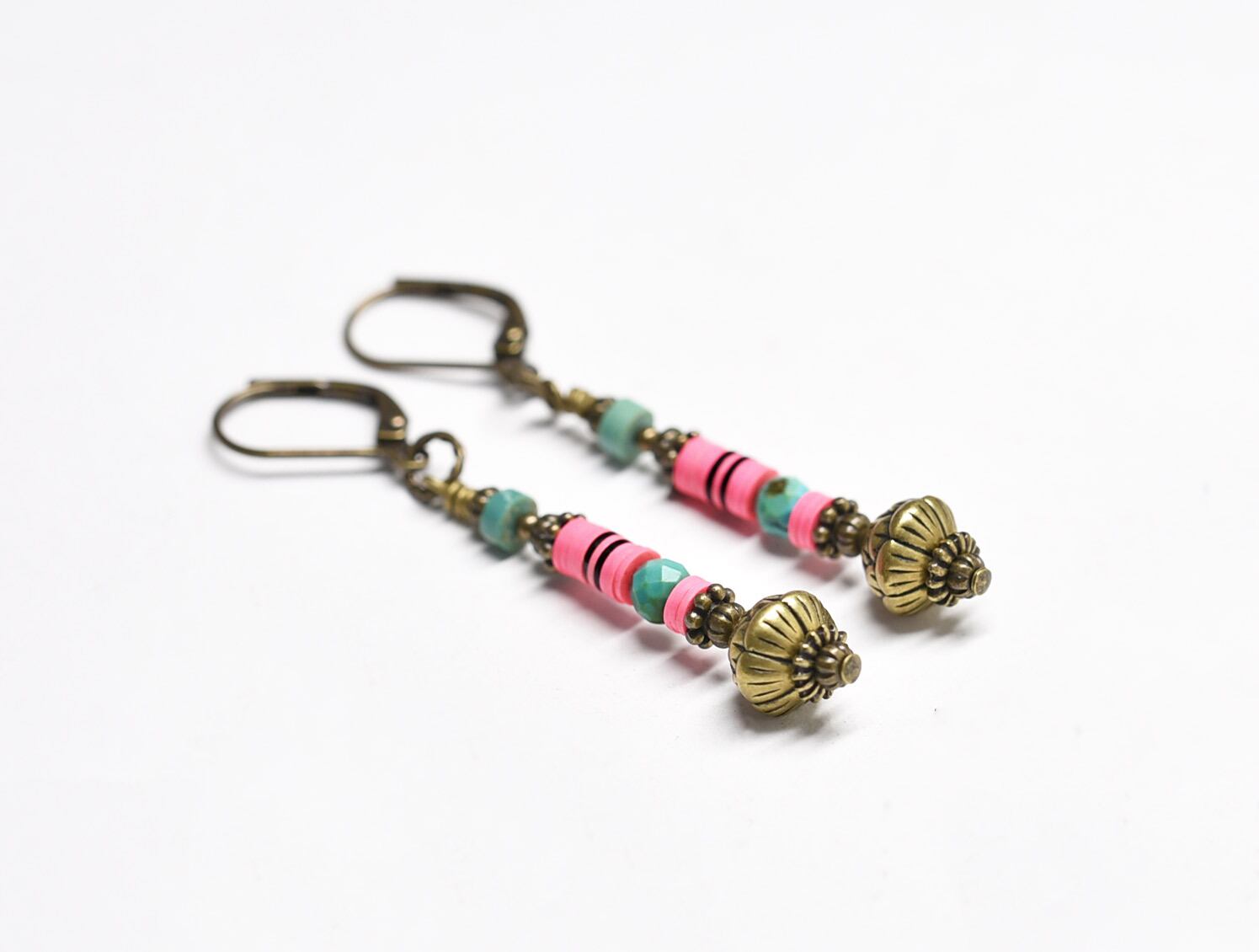 身に着けるだけで元気が出そうなカラフルで味わいのあるピアスです。