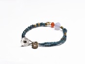 素材:古代ブルーレース、古代瑪瑙、ガラス、真鍮、カレンシルバー、ロウビキ紐