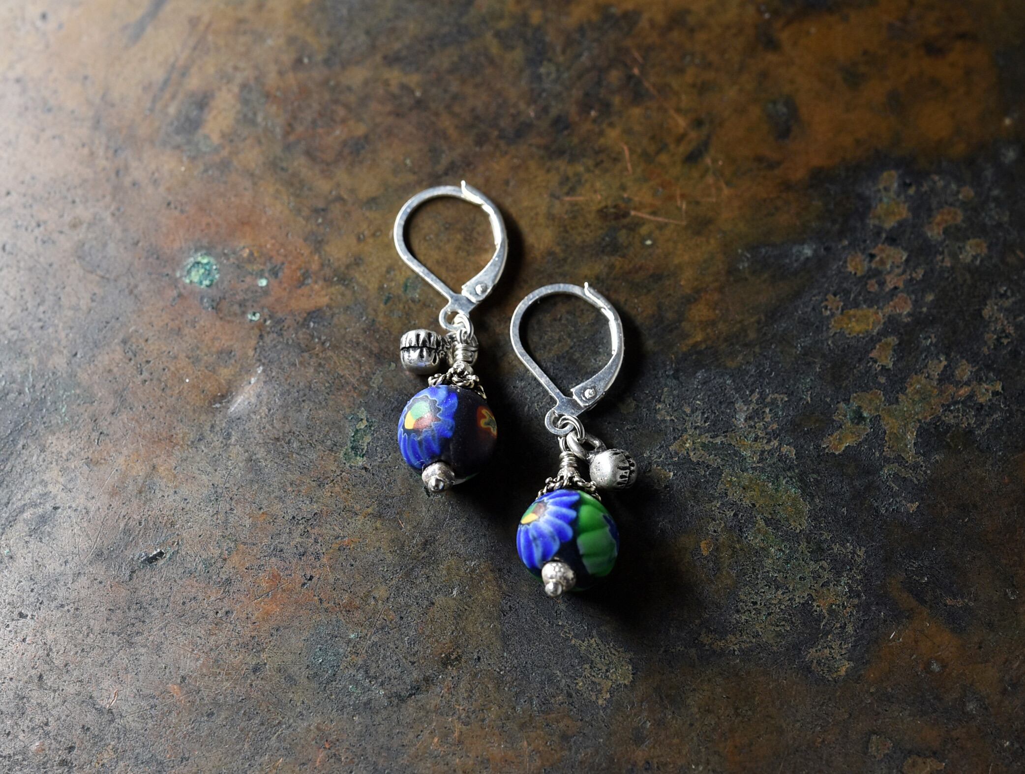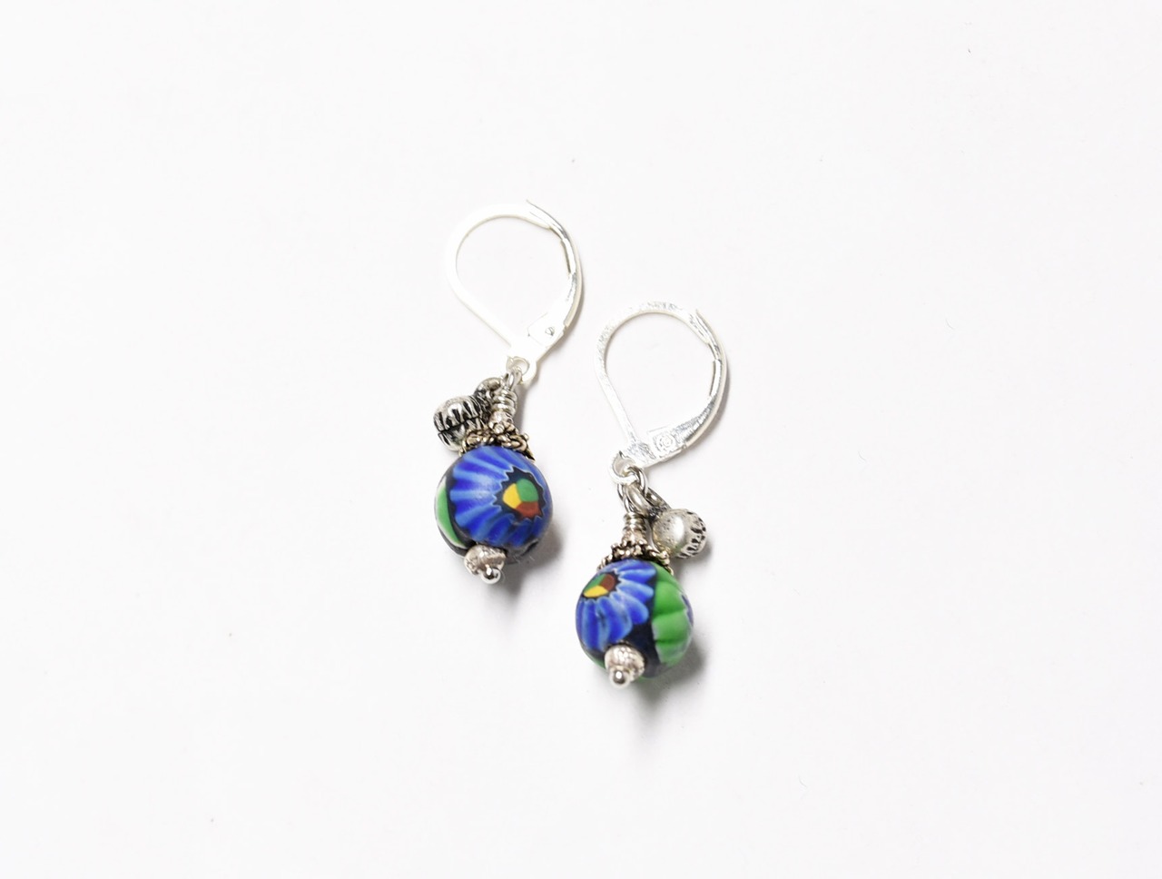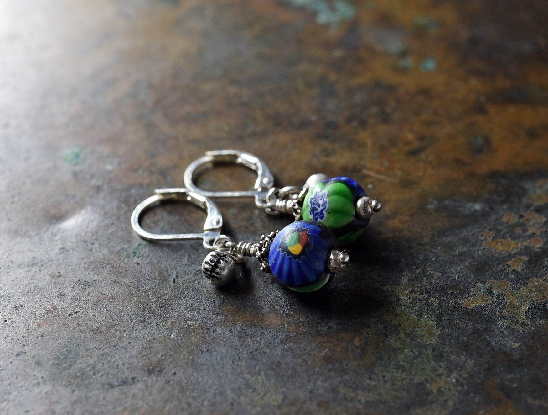ベネチアアンティークまん丸ミルフィオリと小さな鈴のピアス