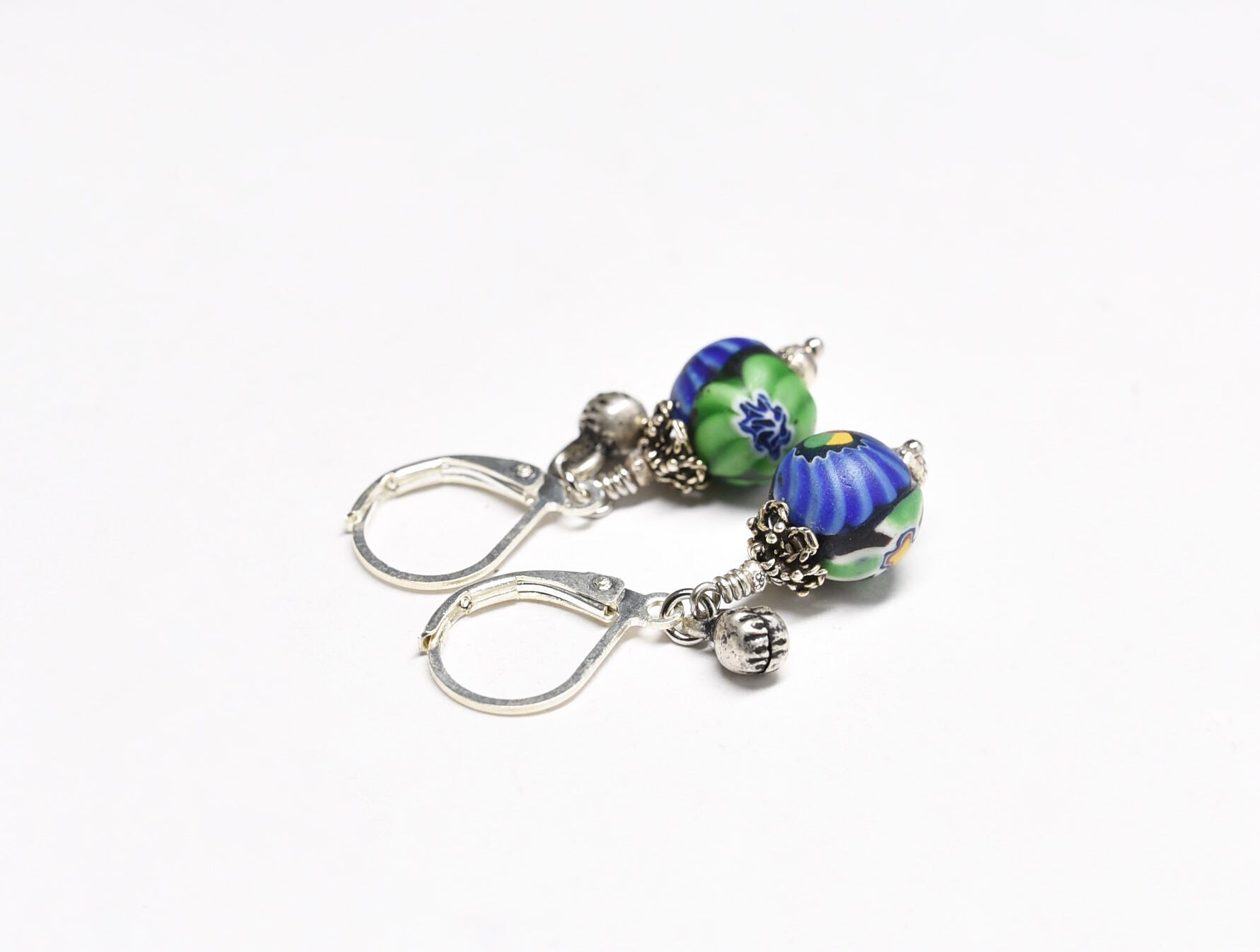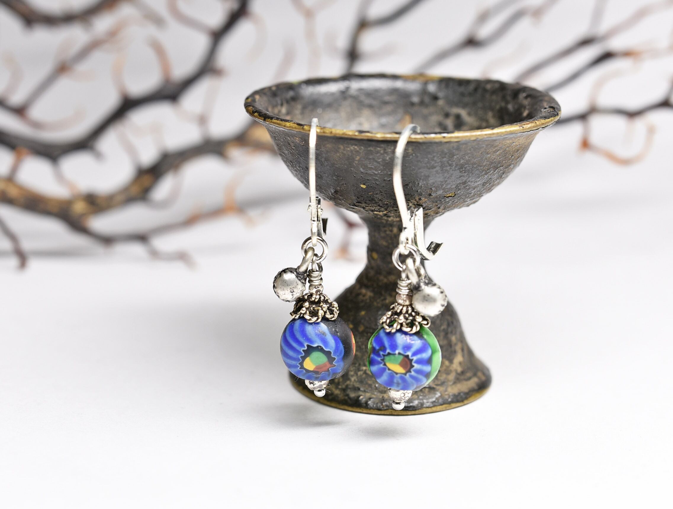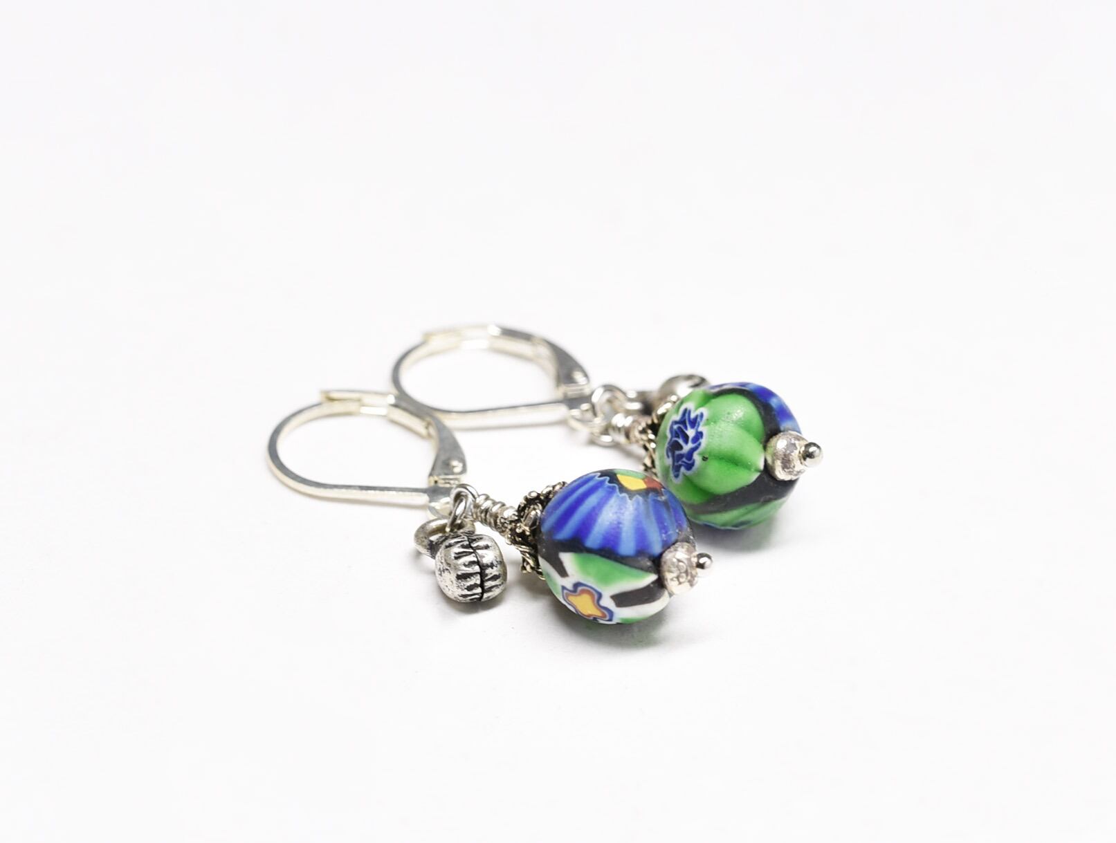 ベネチアアンティークまん丸ミルフィオリと小さな鈴のピアス
