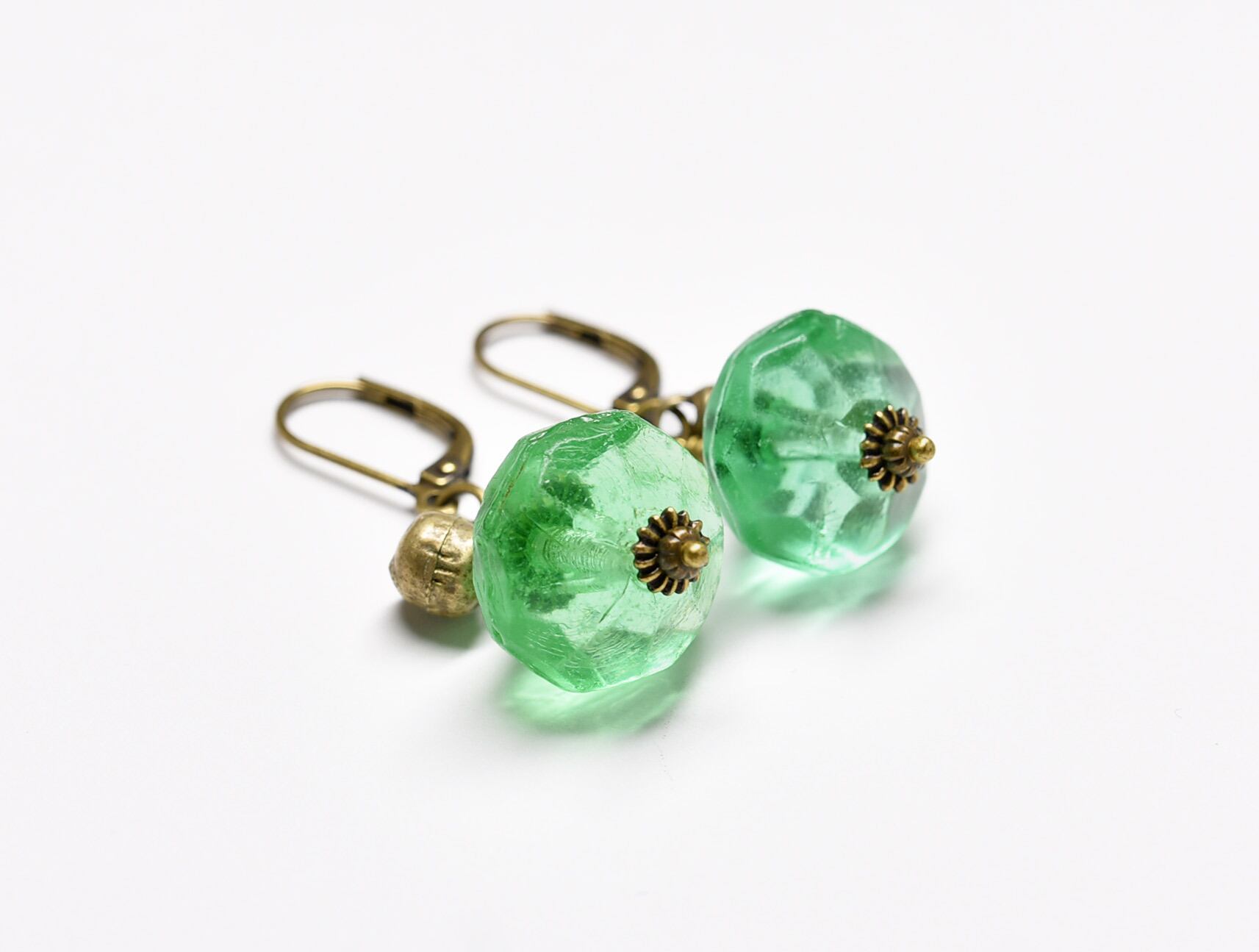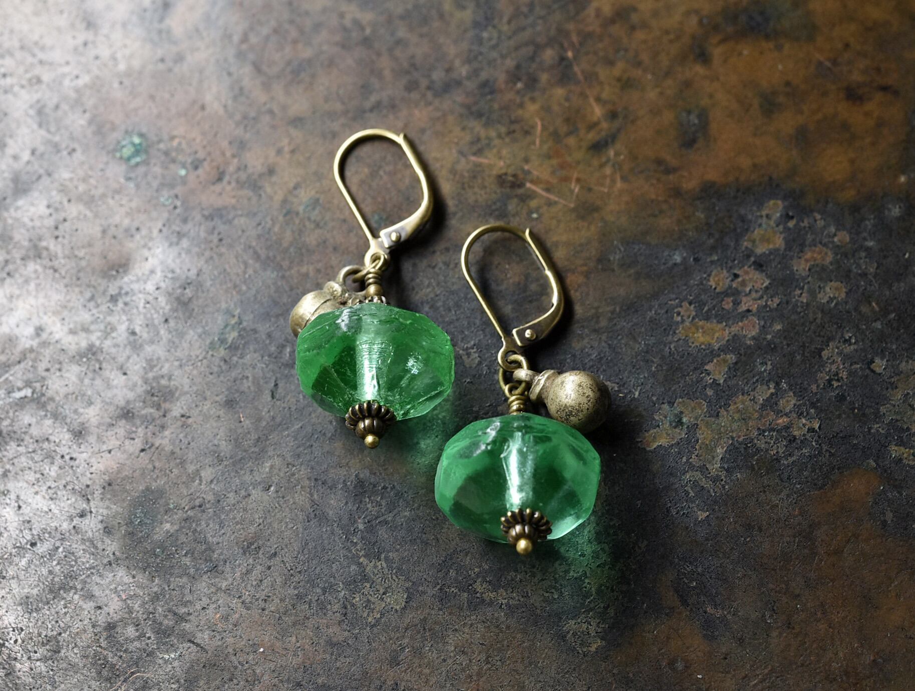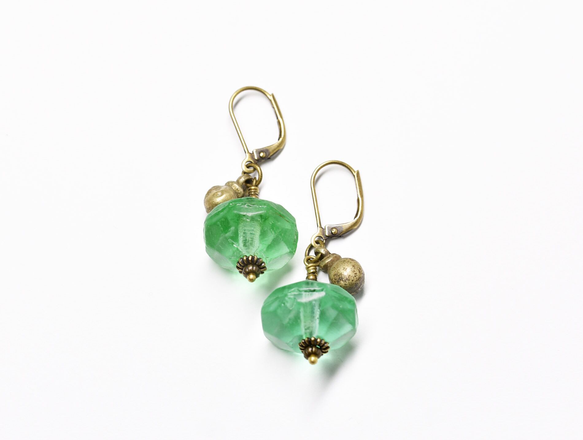 アンティークのウランガラスと鈴を繋いだピアスです。