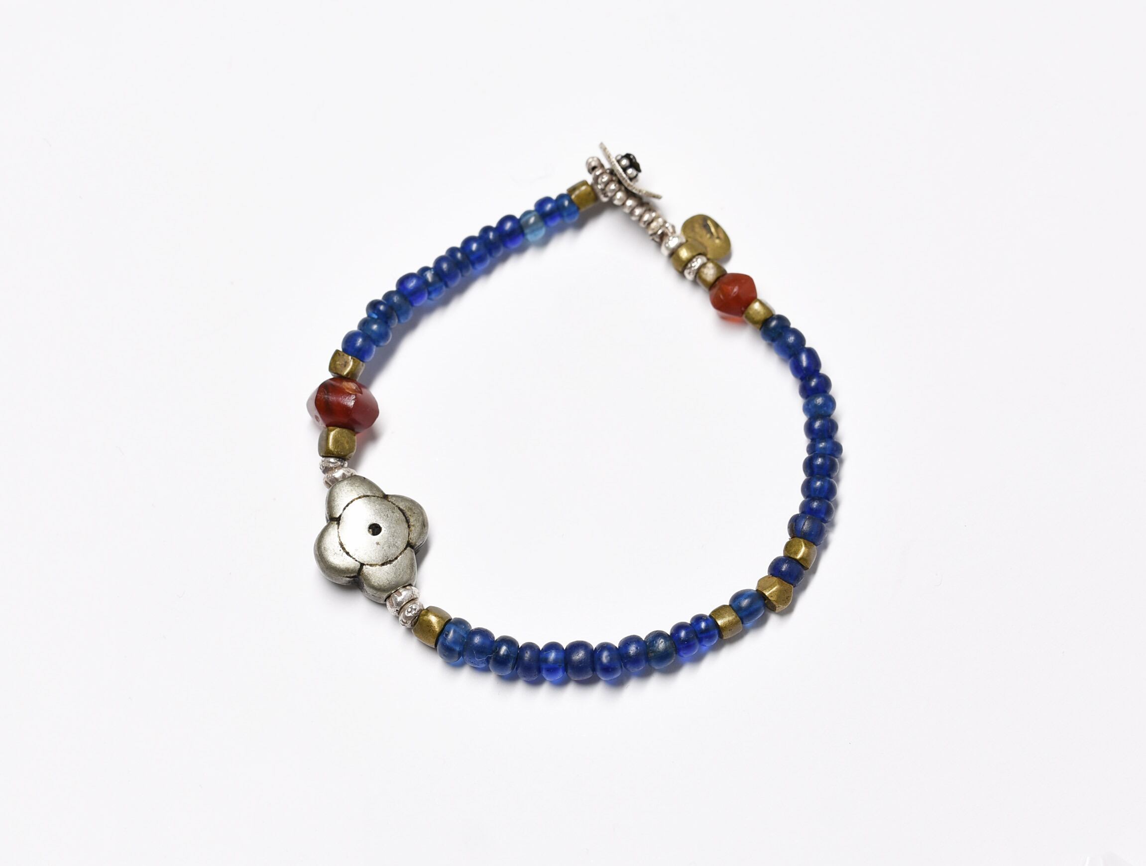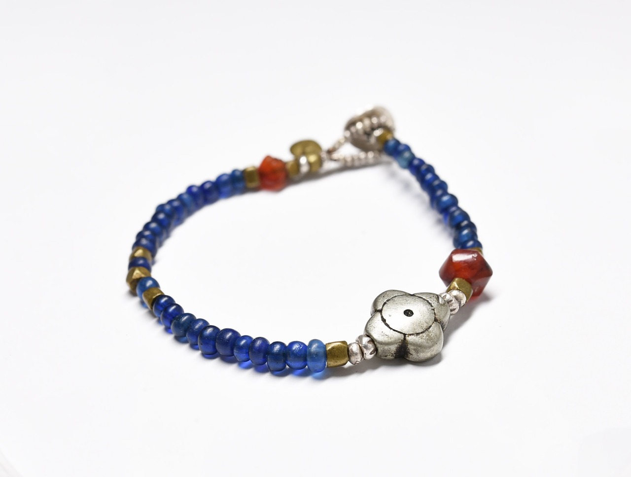 チベットトクチャと古代カーネリアン、oldオリッサブラス、ブルーアンティークビーズのブレス