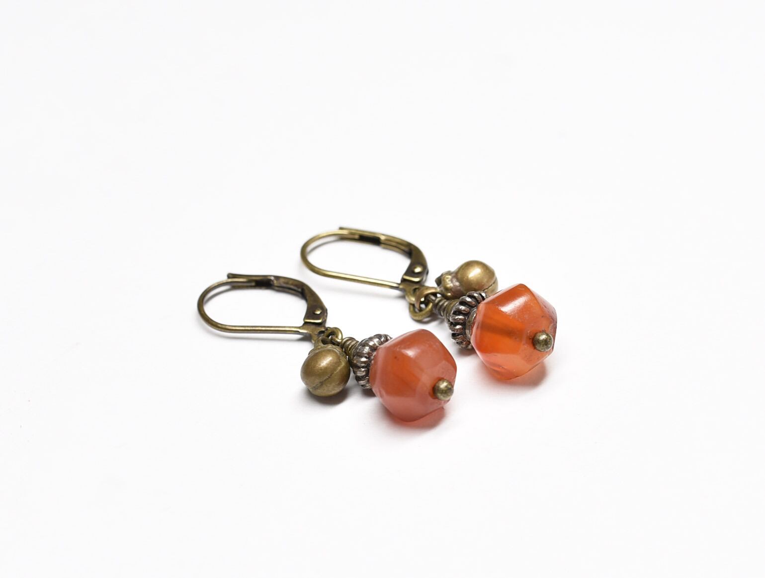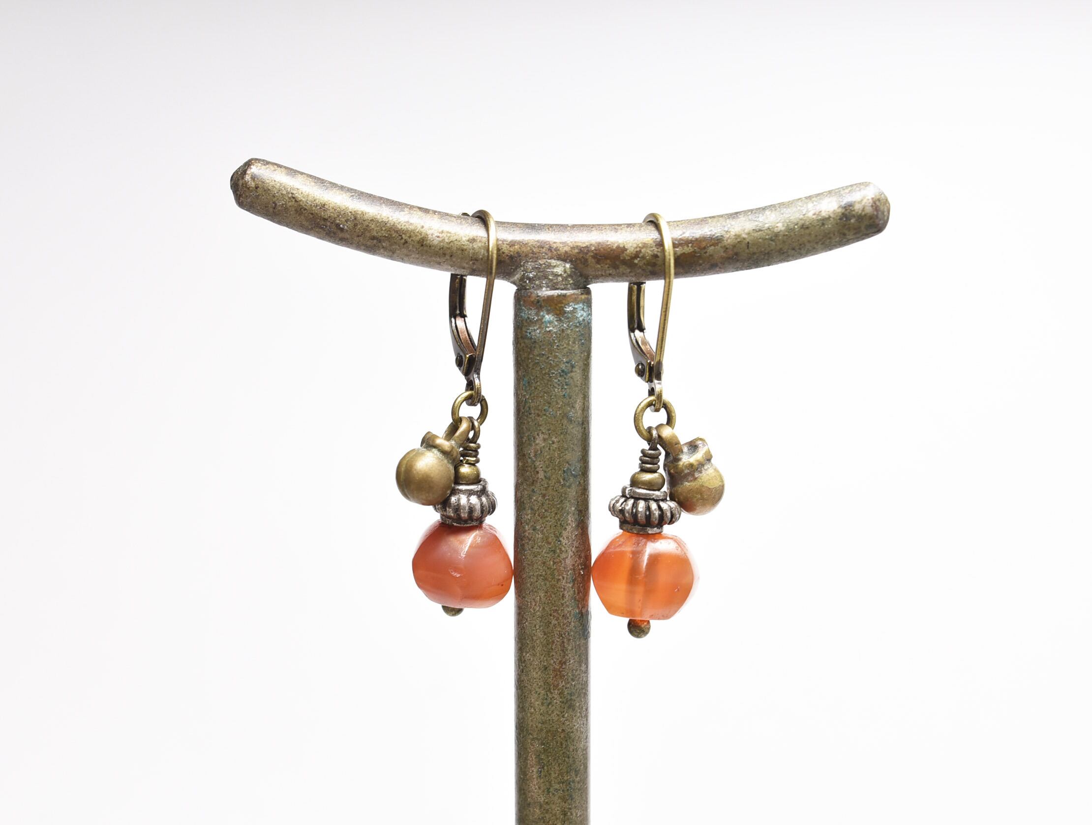 古代カーネリアンと民族鈴の小ぶりなピアス