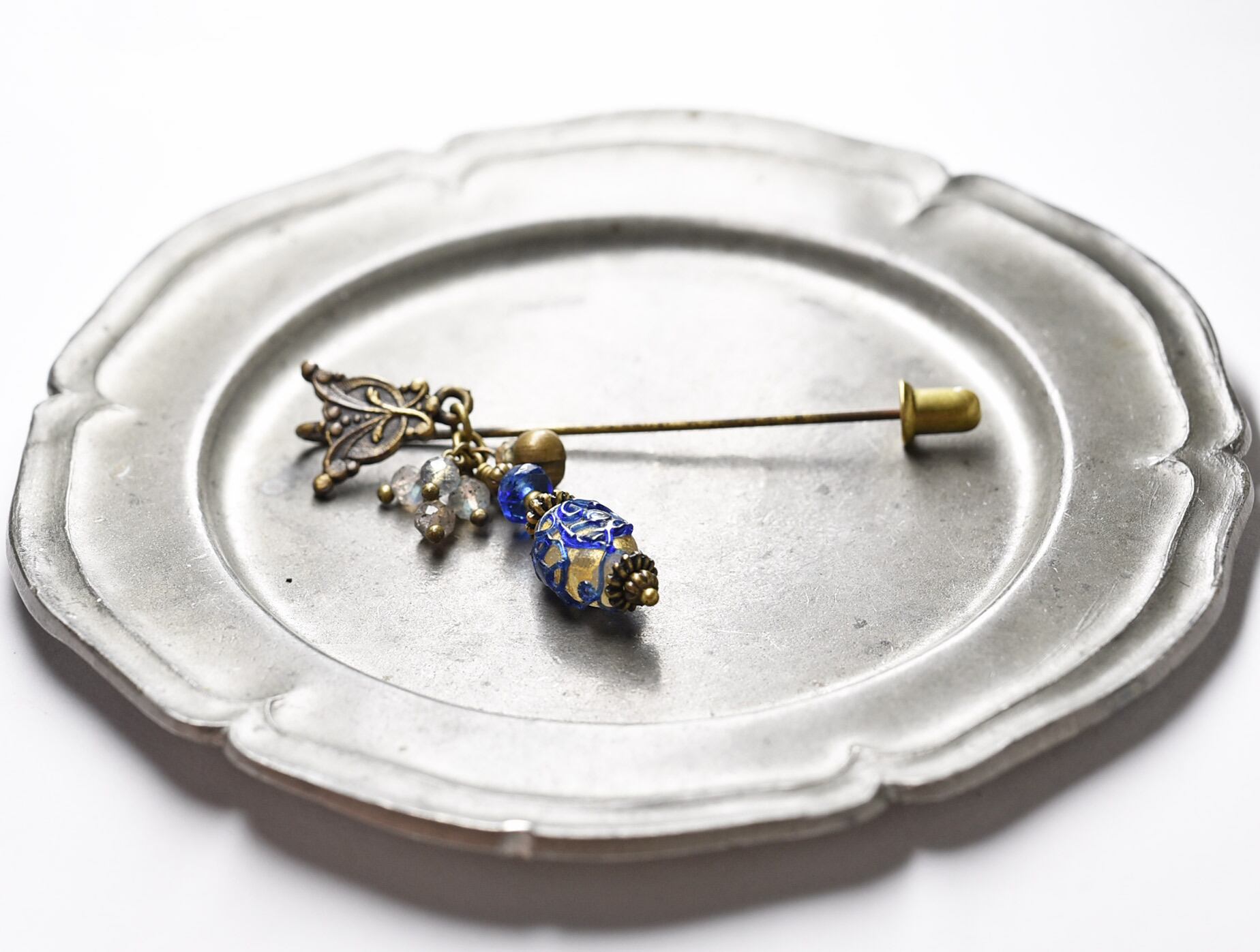 ハットピンはヨーロッパから届いたヴィンテージ品です。経年の真鍮がとても良い味わいです!